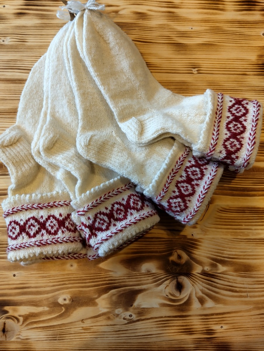 100% aitu vilnas zeķes ar atlokāmu dekoratīvo-tautisko valnīti.Vairāk domātas tautisko deju dejotājiem. 34.-36.izmērs.