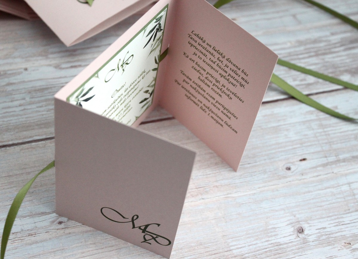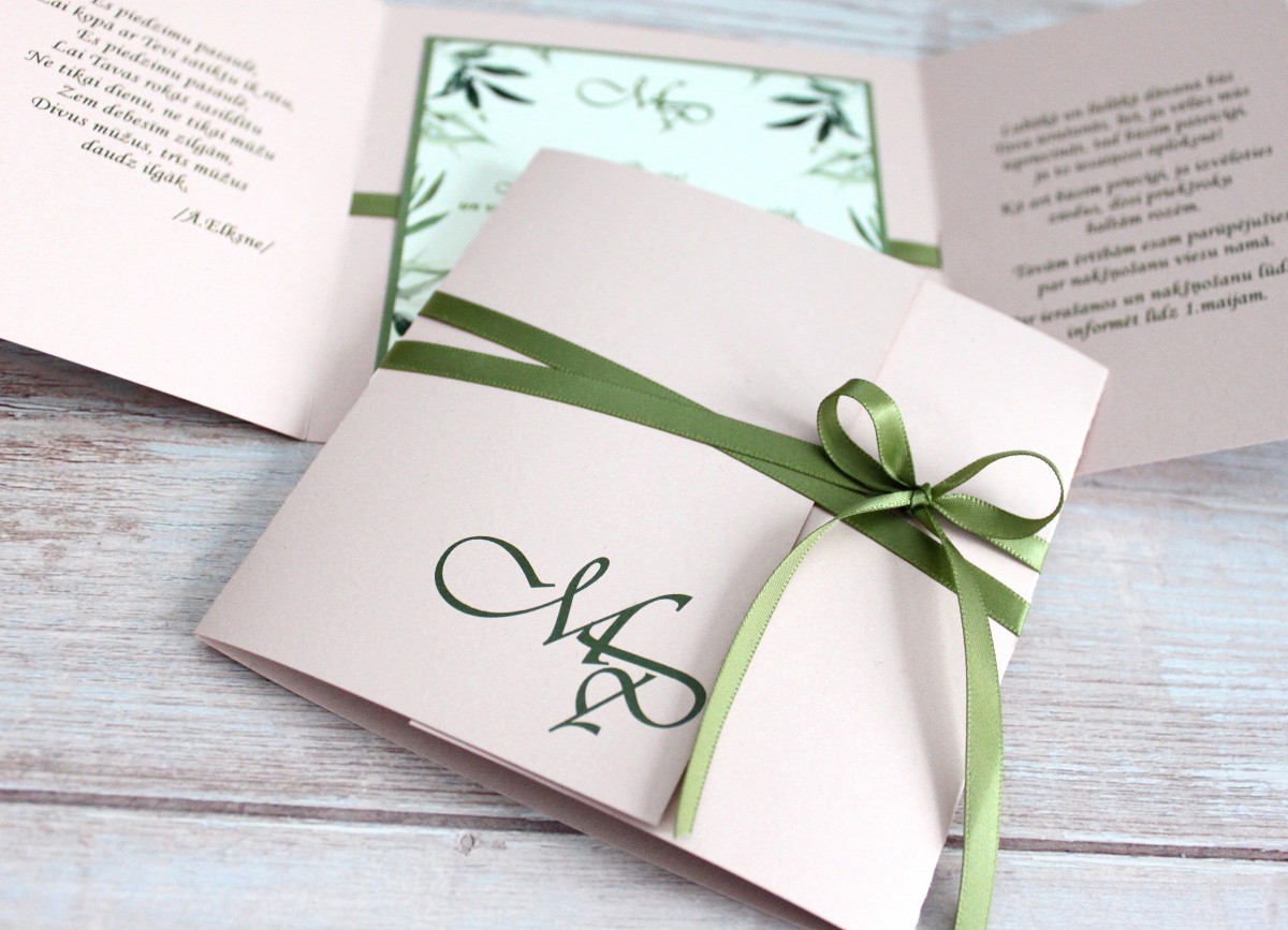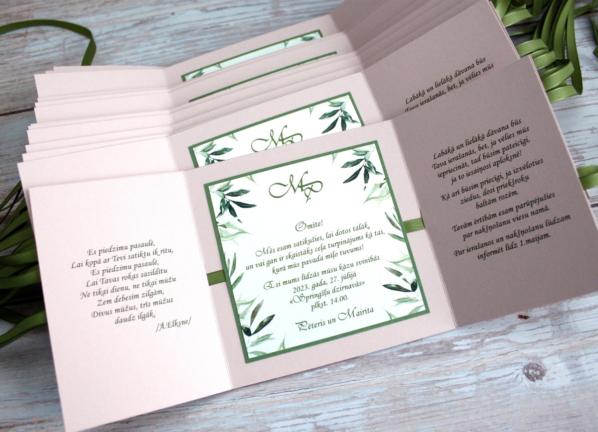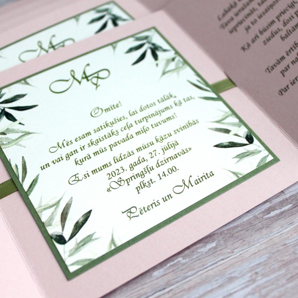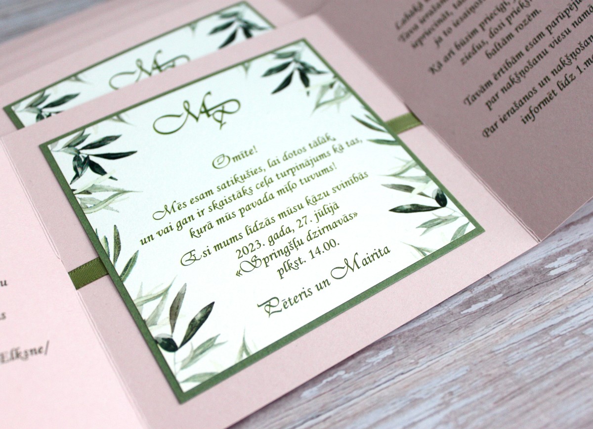 Kāzu ielūgumi THINK OF YOU 120X120 OLIVE TREE & POWDER
