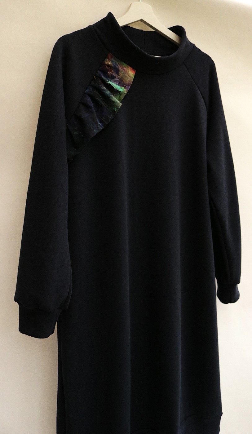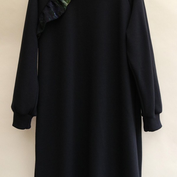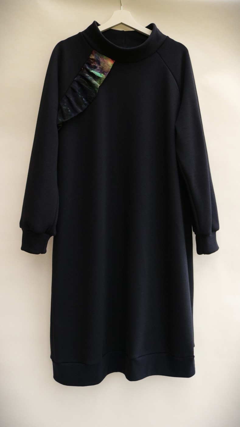 Mīkstas, siltas alpenfleece (ar nelielu kažociņu iekšpusē) trikotāžas džemperkleita. Elastīga, skaisti krītoša trikotāža.