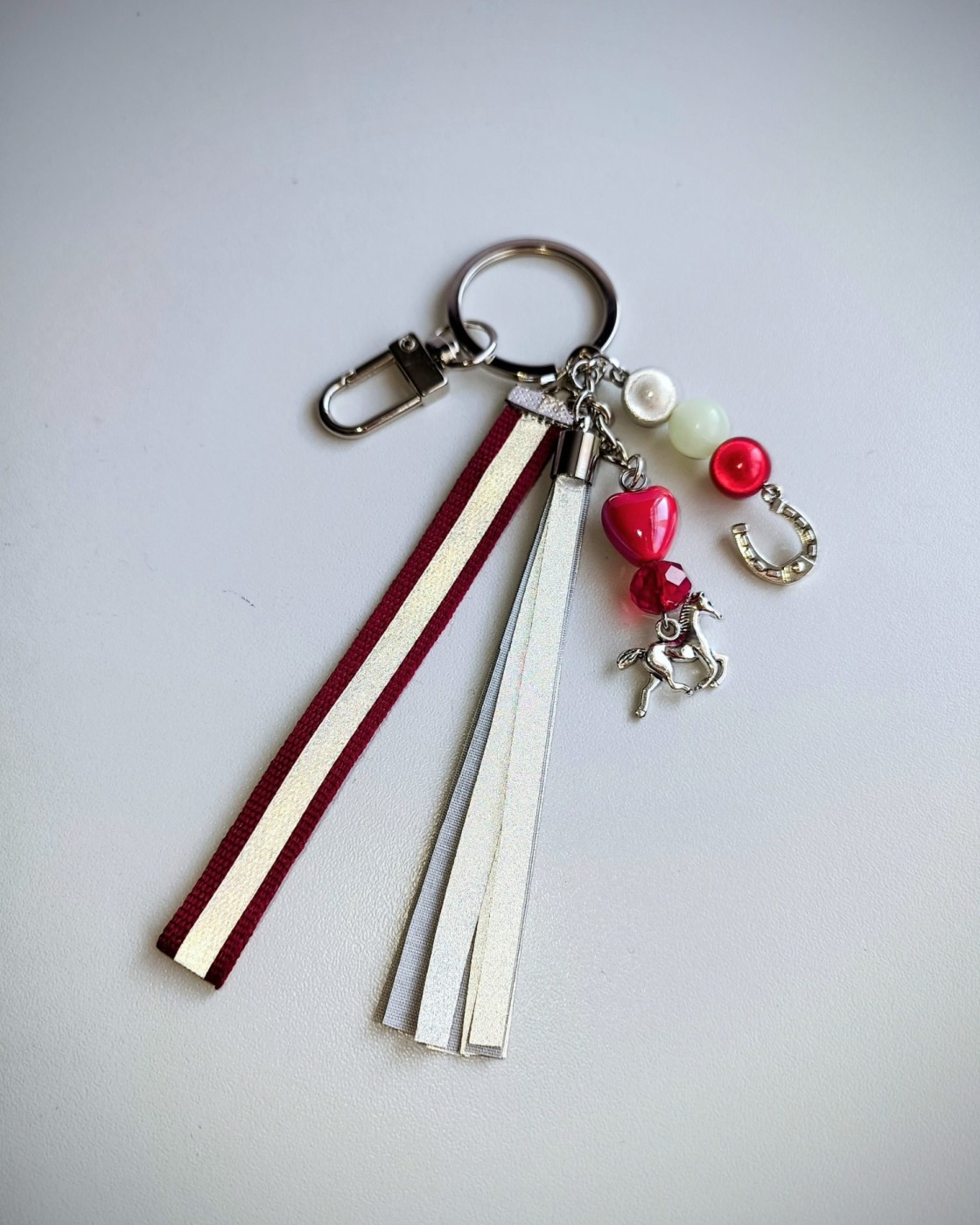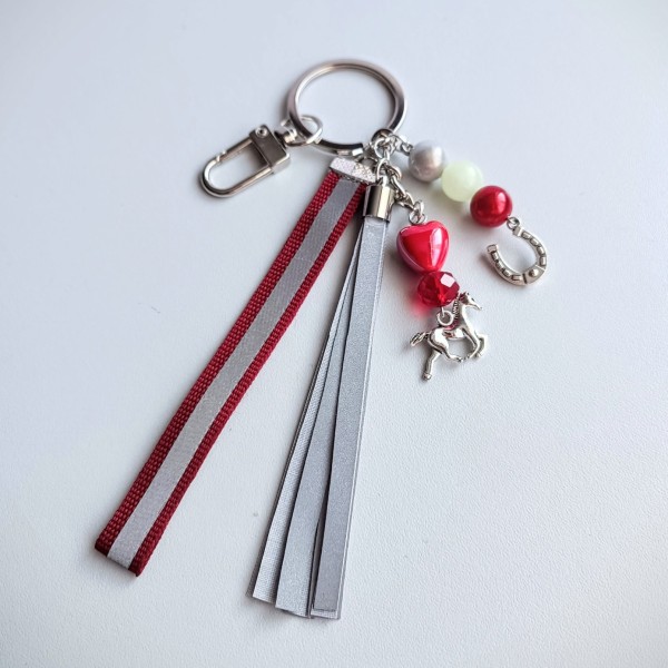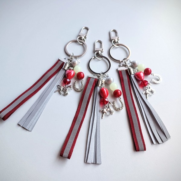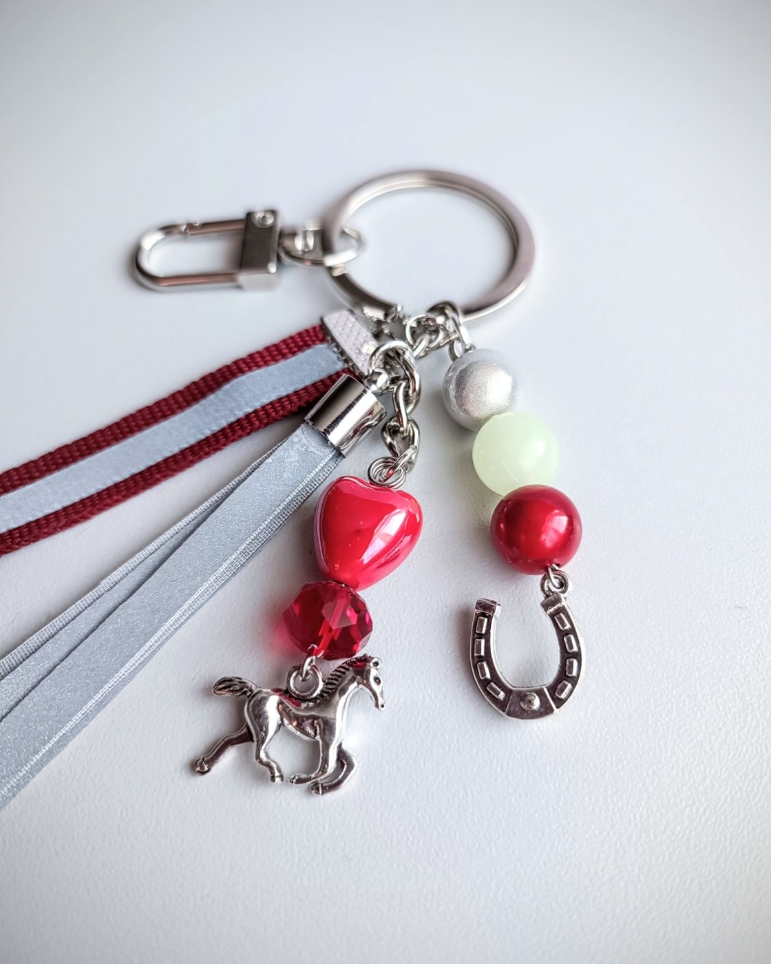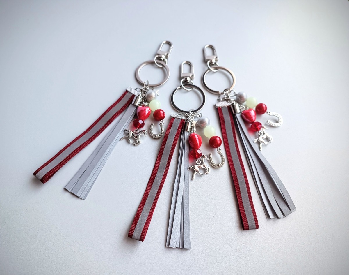 🔗Piekariņi izgatavoti no sertificētas gaismu atstarojošas auduma lentas skariņām, metāla piekariņiem - zirgs un pakavs; stikla, akrila gaismu atstarojošām bumbiņām, keramikas sirsniņas.
