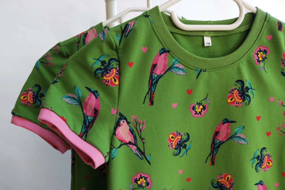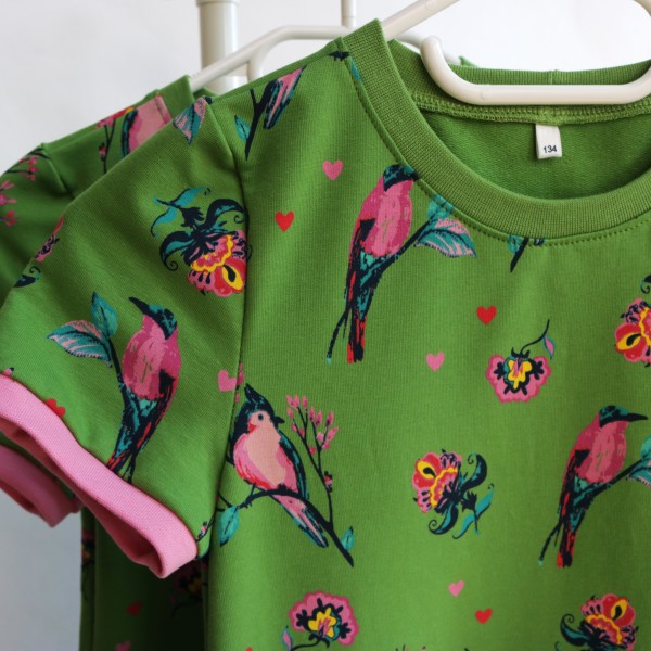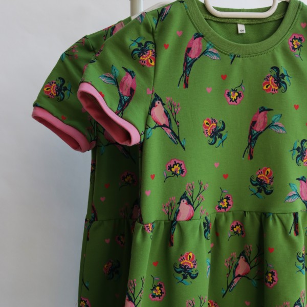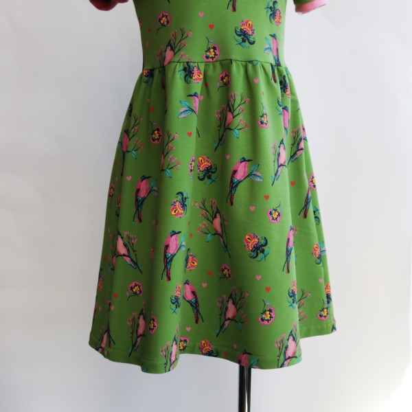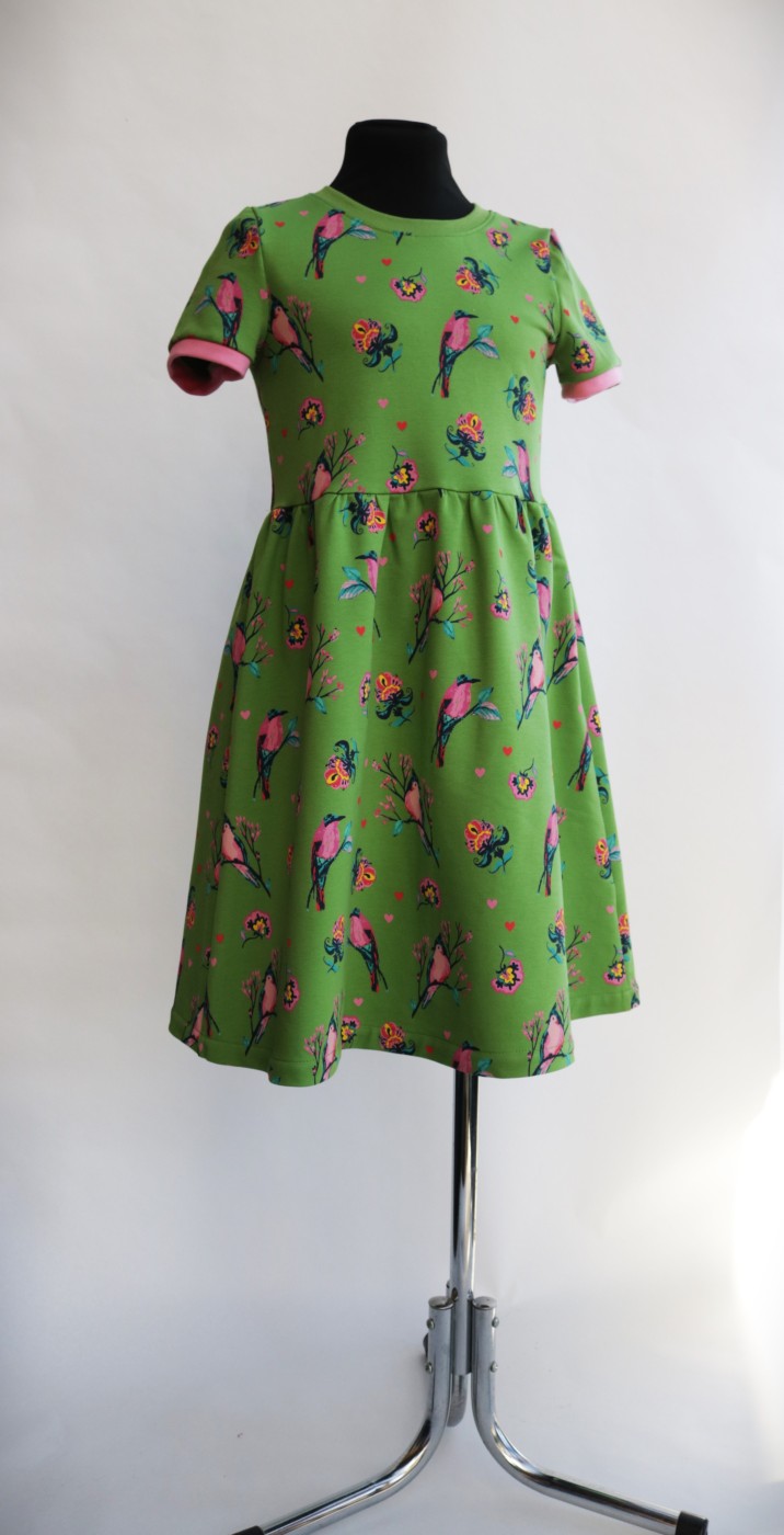 Zaļas kokvilnas cilpiņtrikotāžas kleita.