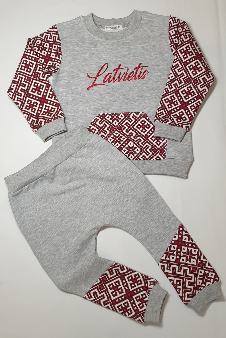 Apģērbu komplekts ar izšuvumu Latvietis/-te, pelēkais