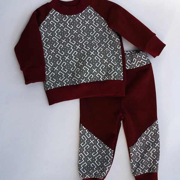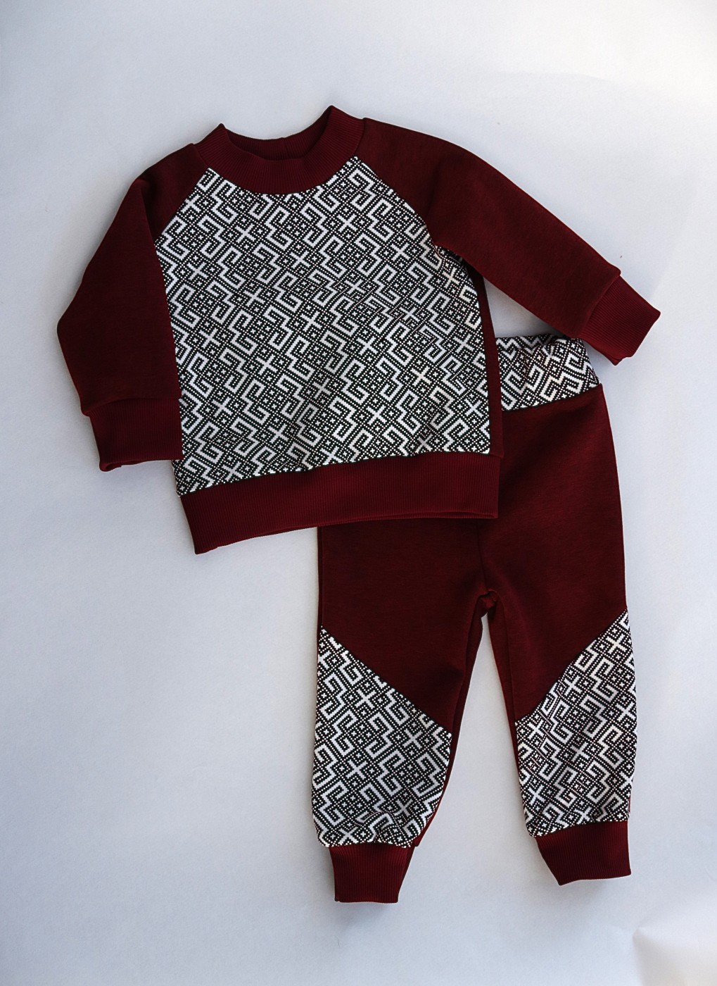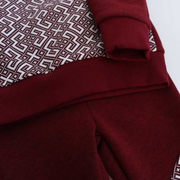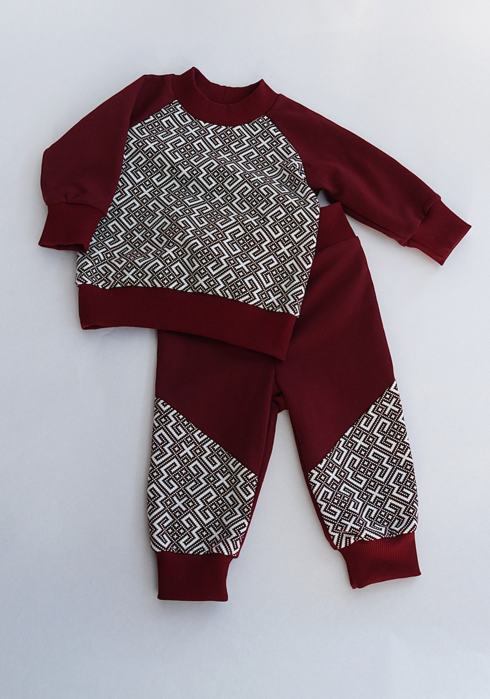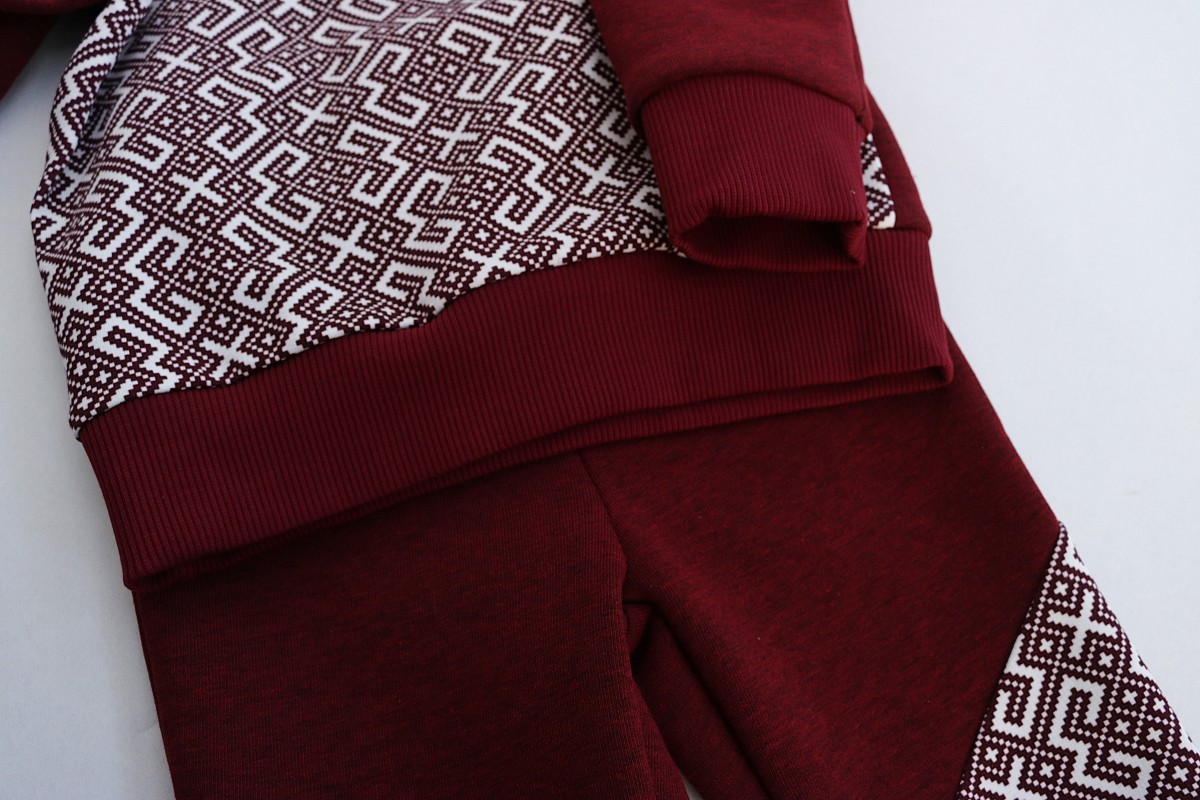 Trikotāžas komplekts ar latvju rakstu pašiem mazākajiem.