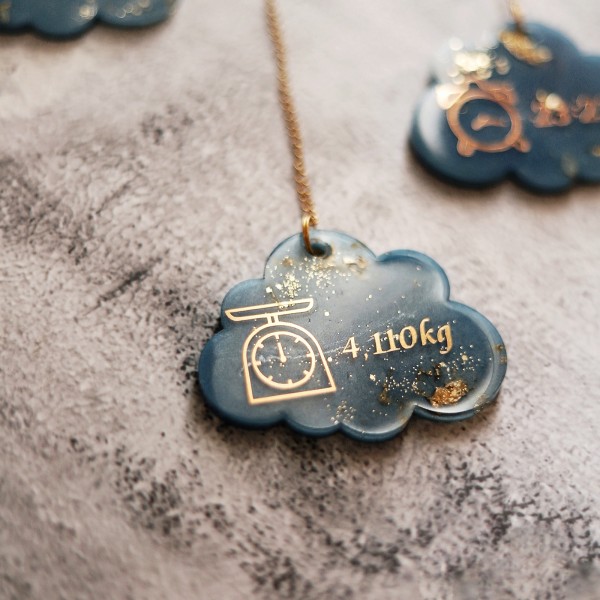 Bērnistabas dekors mākonītis, ar mazulīša dzimšanas datiem. No epoksīdsveķiem, dzīvnieciņu un krāsas var izvēlēties.