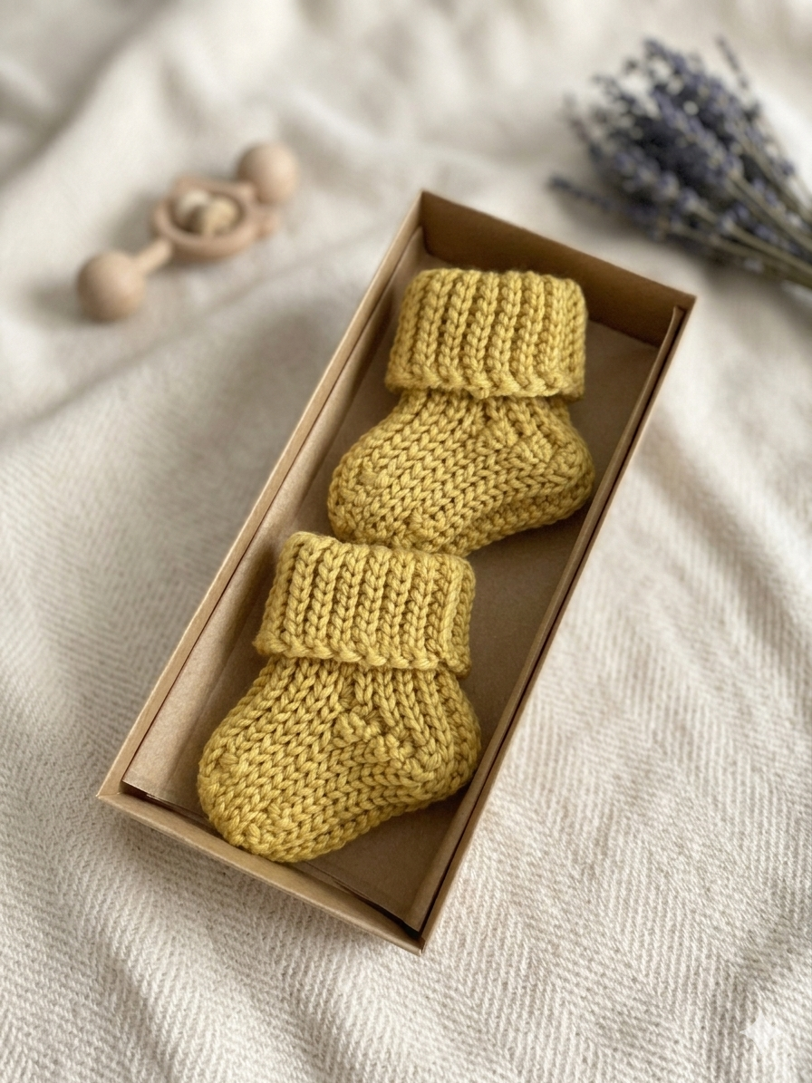 🧶 Sinepju krāsā: 0-3 mēn. (~8 cm) — 1 pāris