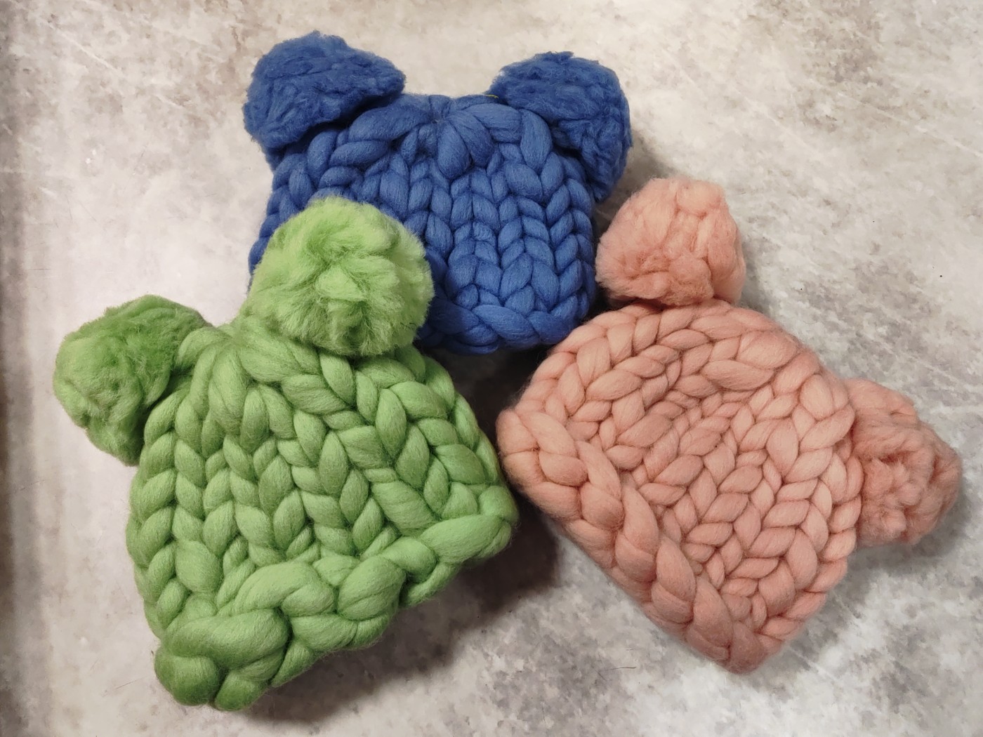 Dabīgas aitas vilnas resnās dzijas adītas cepures bērniem.
