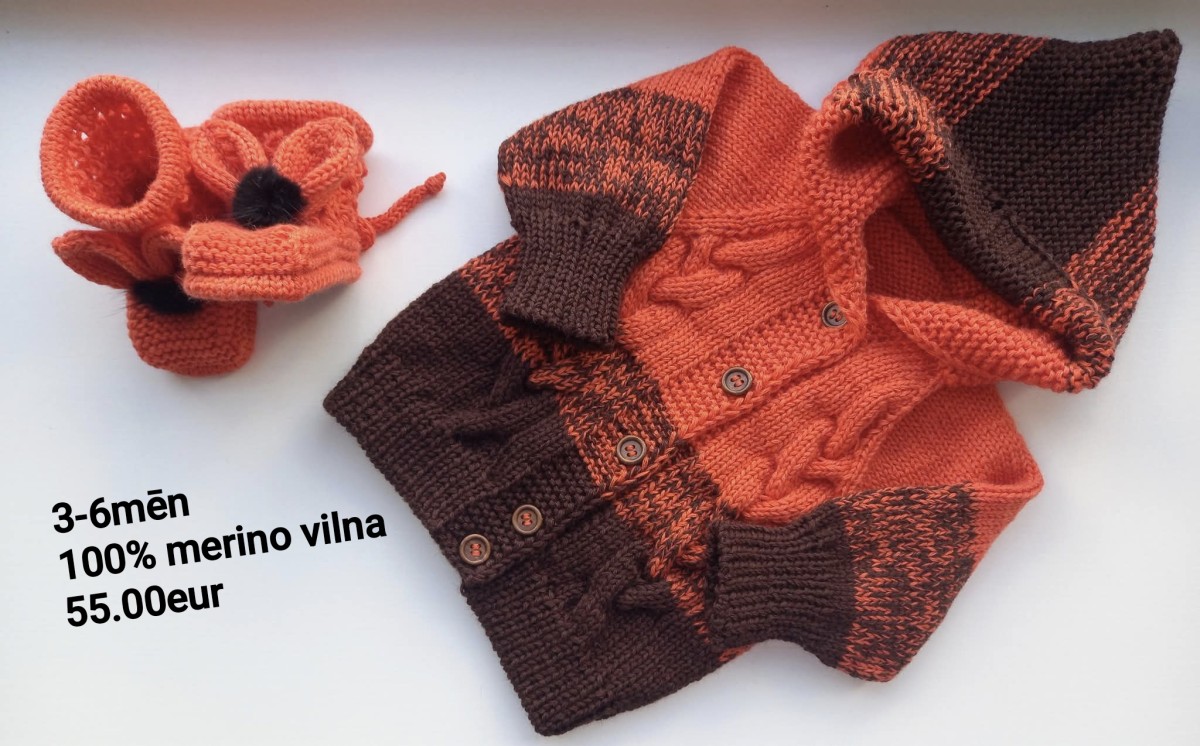 Skaista 100% merino vilnas jaciņa un čībiņas 3-6mēn mazulim