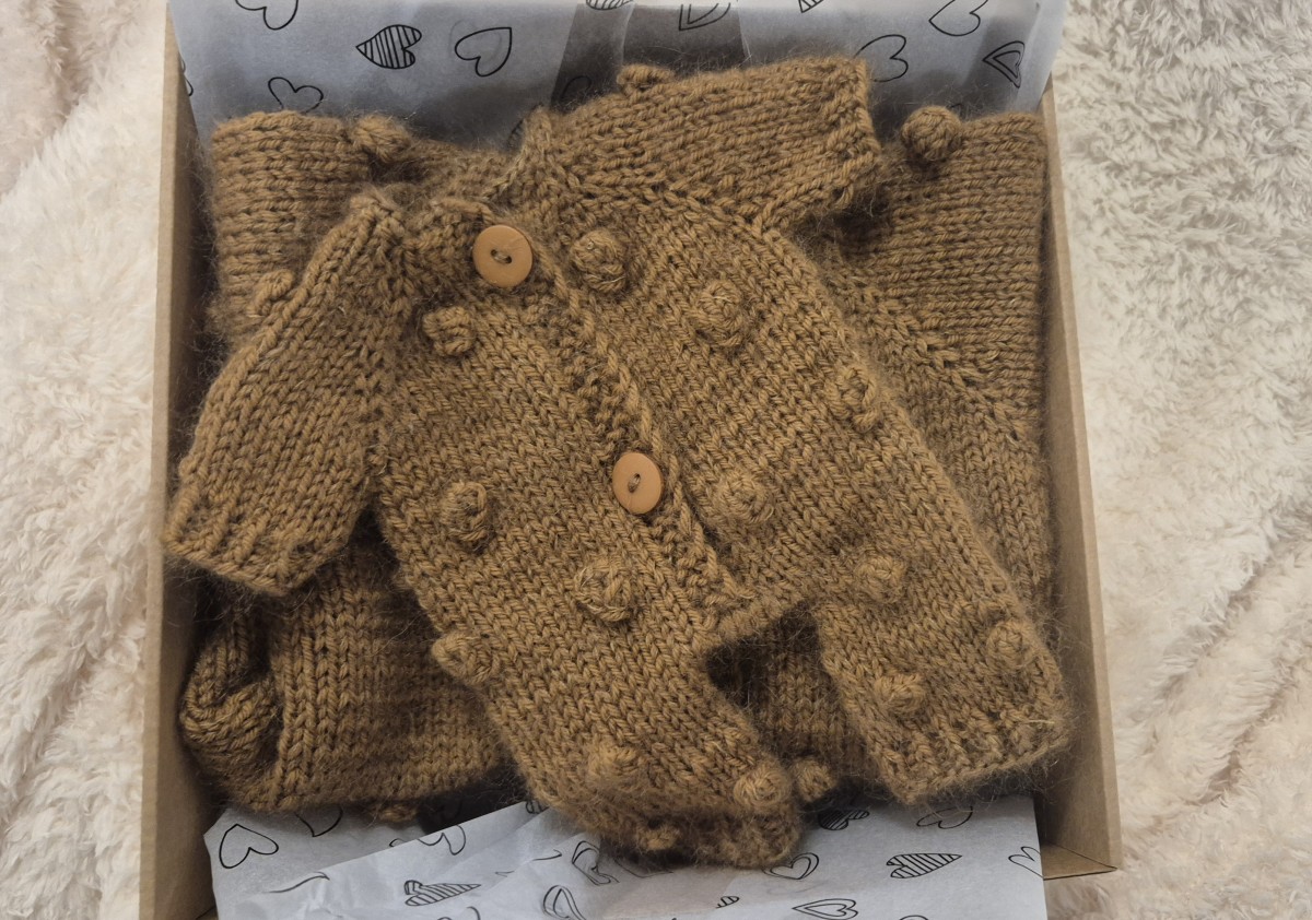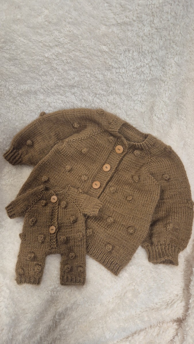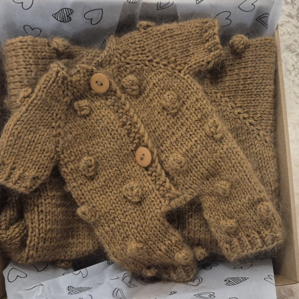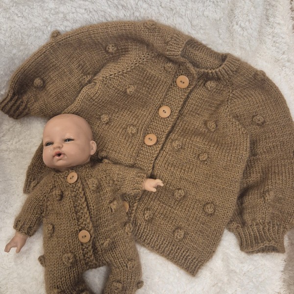 Merinvilnas komplektiņš meitenītei -jaciņa un kombinezons lellītei Komplektiņš iesainots kastītē.