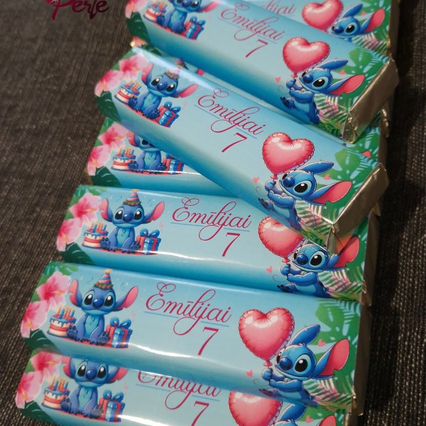 Dizains tiek sagatavots katram klientam individuāli pēc vēlmēm. Cenā šokolāde + etiķete, aplīmēšana. Attēlā redzamas "Roshen" 43g šokolādes. Daudzumiem zem 10gb var tikt piemērotas maketa sagatavošanas izmaksas.