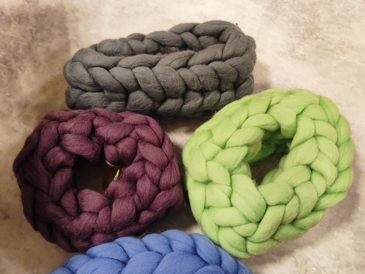 Dabīgas aitas vilnas resnās dzijas adītas šalles bērniem.