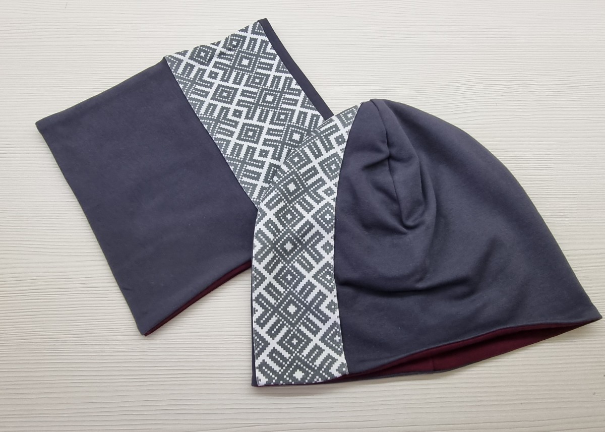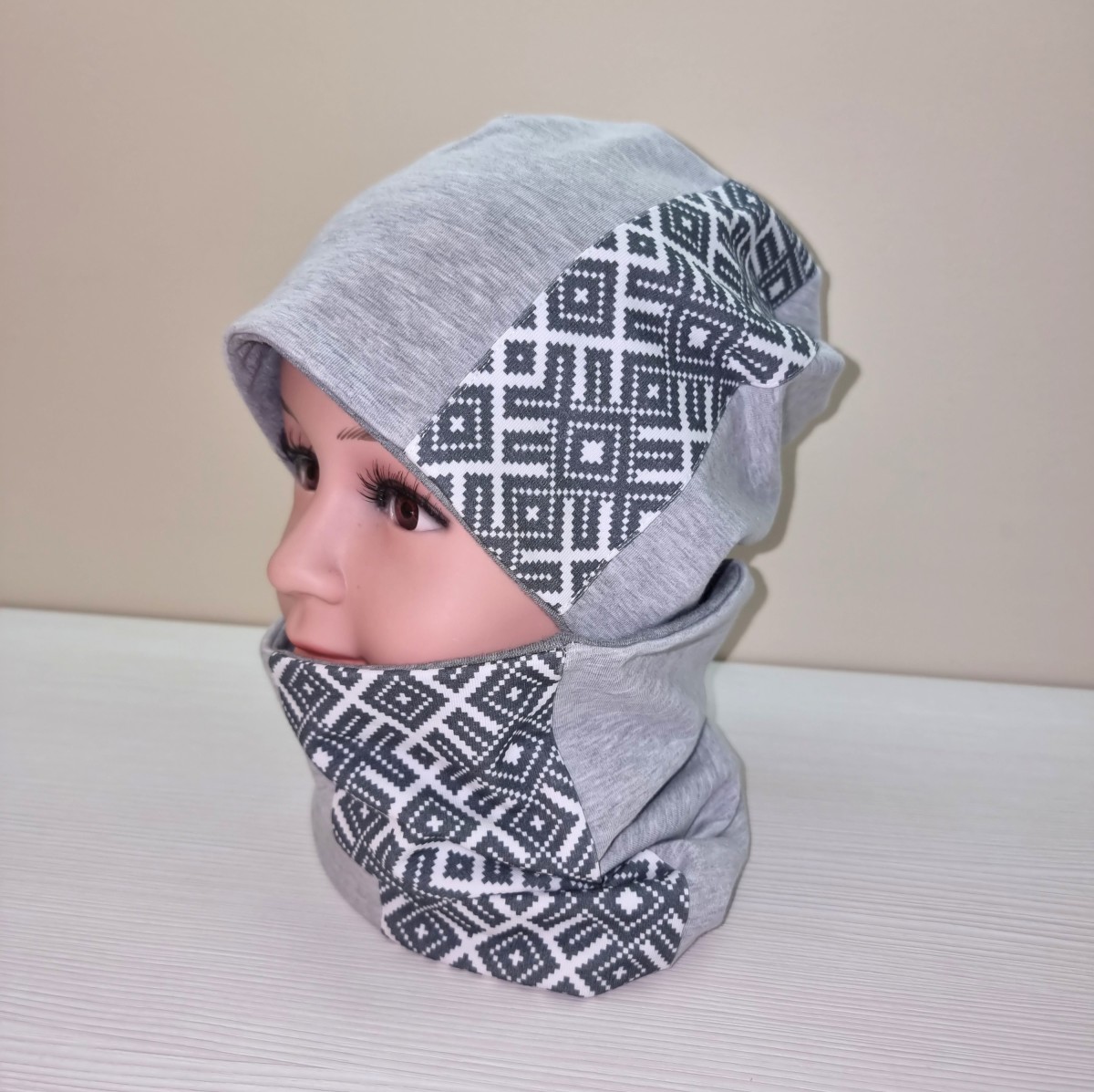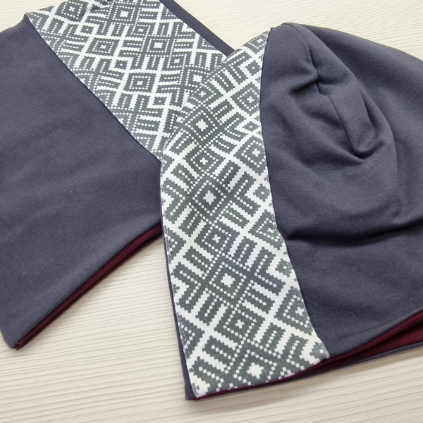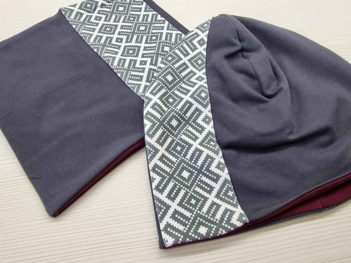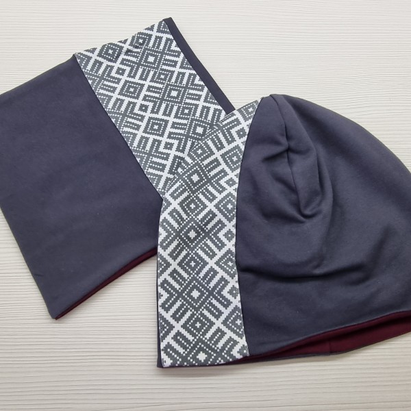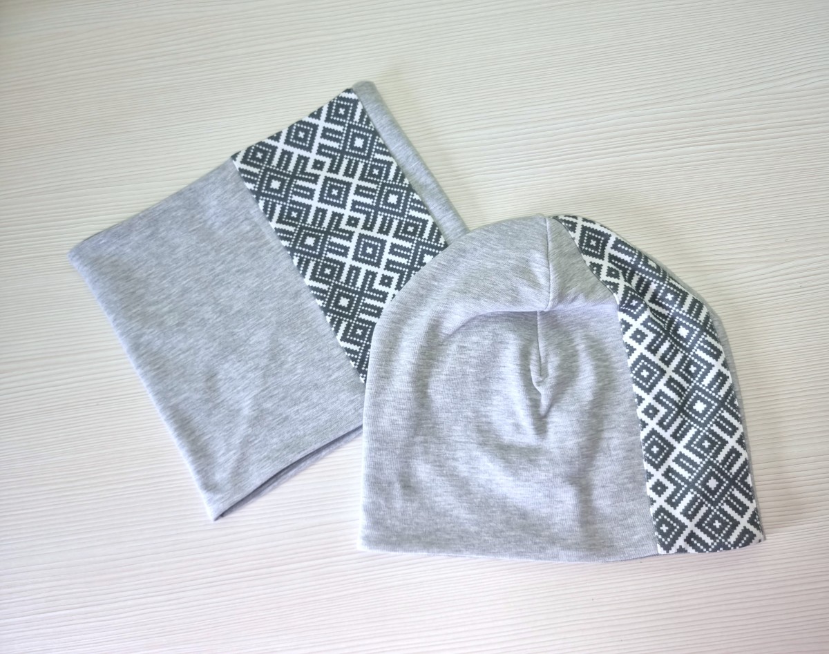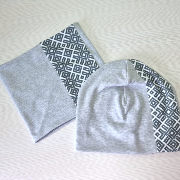 Cepure un šalle tautiska Pelēka, komplekts pieaugušo vai bērnu