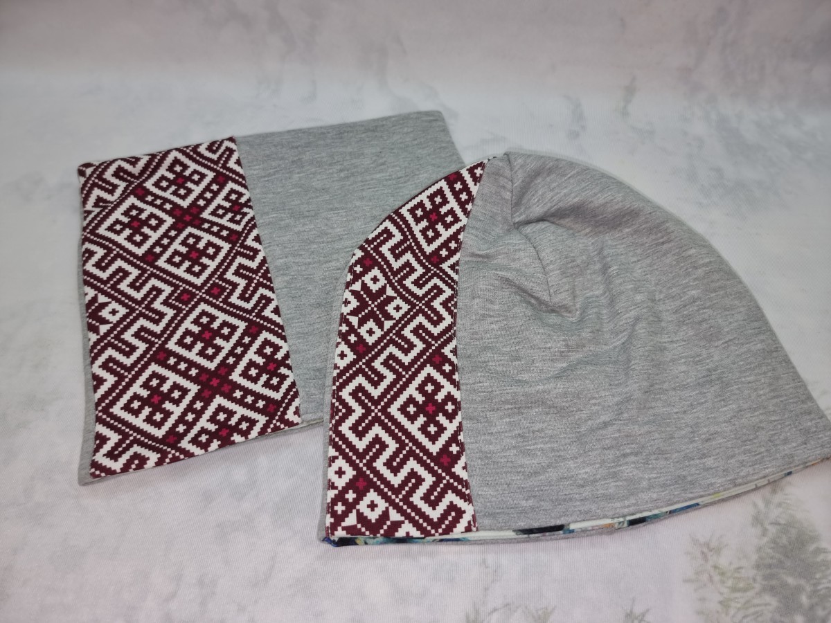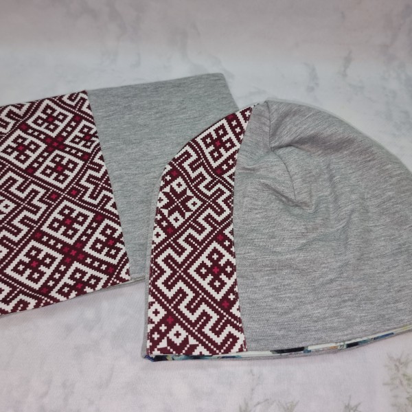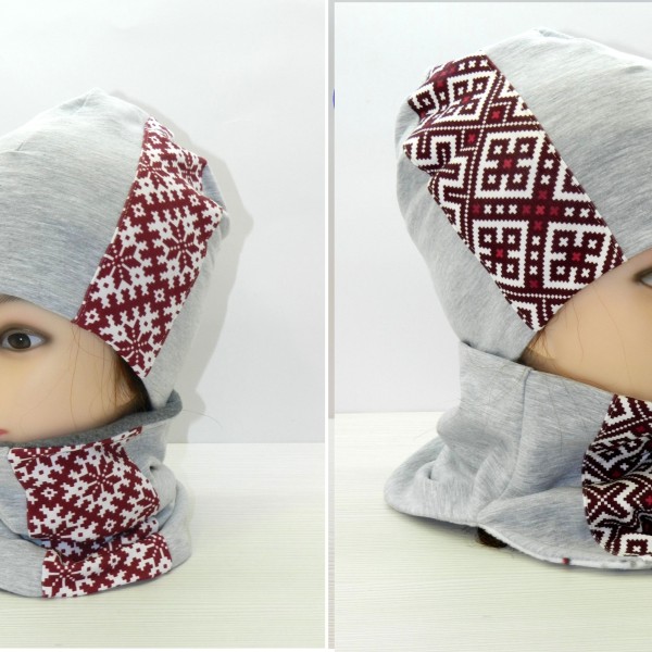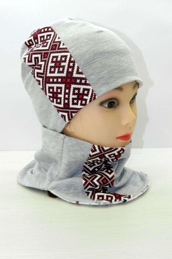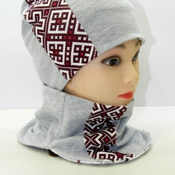 Cepure un tuneļšalle tautiska Pelēka, komplekts