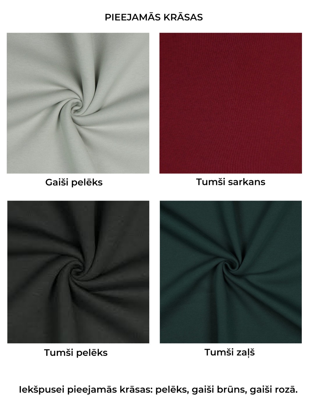 Šūtas dubultā - siltināta trikotāža ārpusē, parasta kokvilnas trikotāža iekšpusē. Ir mīkstas un siltas.