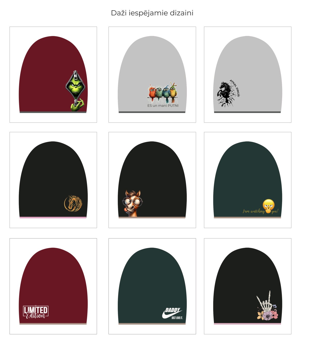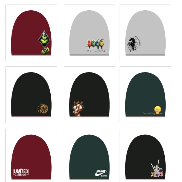 Pasūtāmas personalizētas ziemas "beanie" tipa cepures.