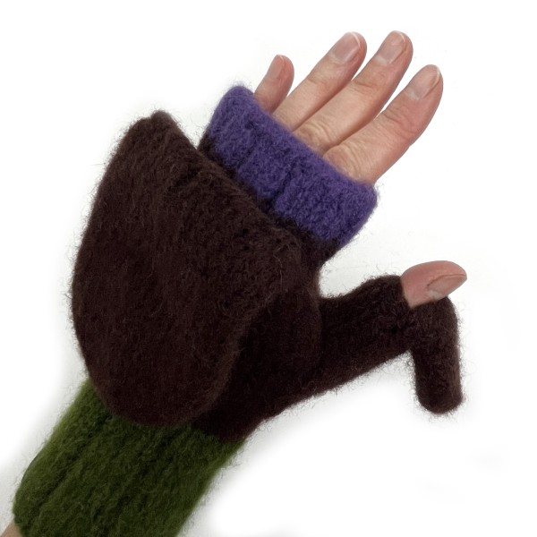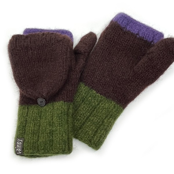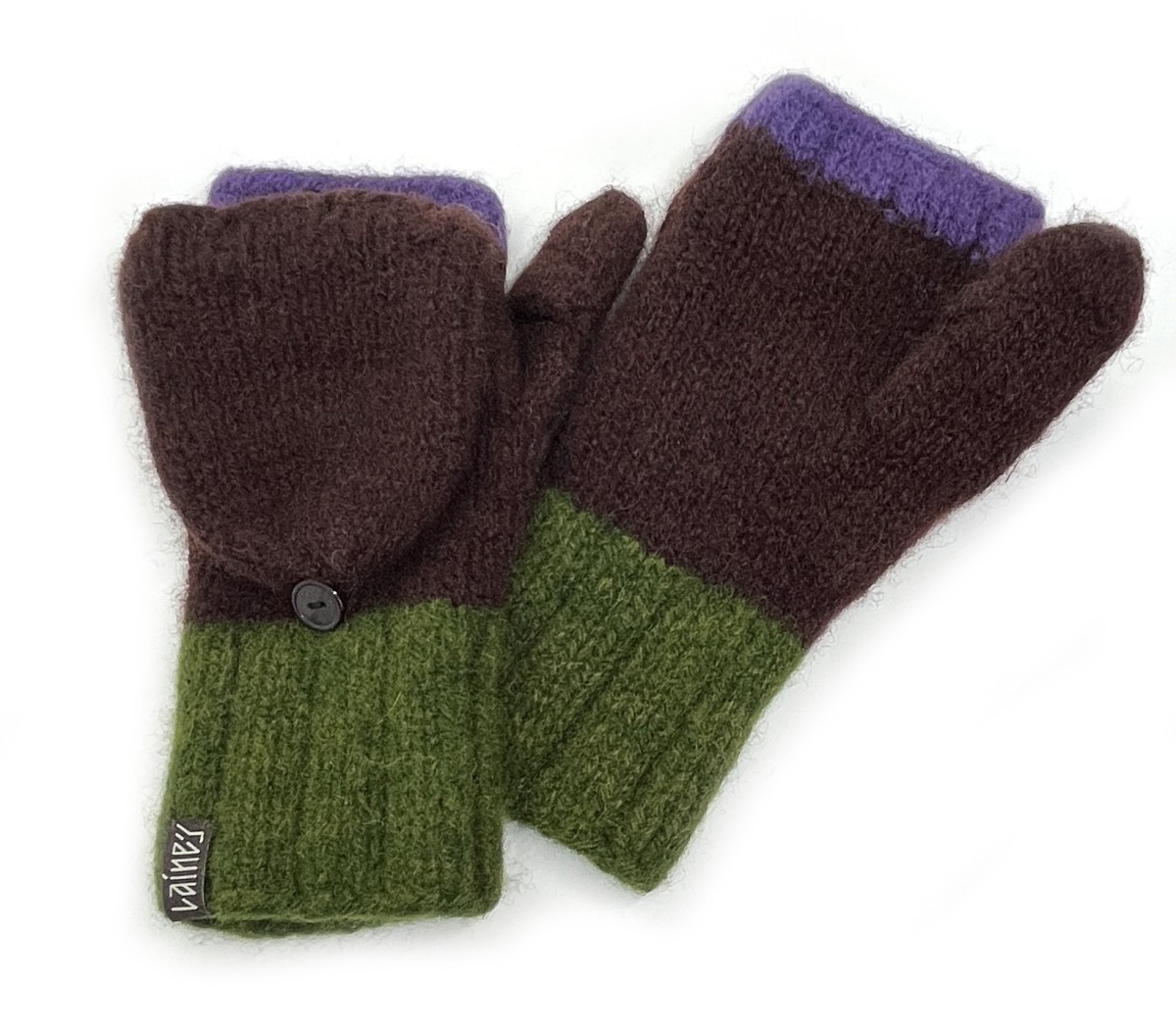 Cimdi ir adīti ar rokām no 100% dabīgas aitas vilnas un pēc tam filcēti, lai iegūtu īpašu blīvumu, siltumu un izturību. Filcēšanas process padara cimdus īpaši piemērotus aukstam laikam - tie labi saglabā siltumu un pasargā rokas no vēja. Praktiska detaļa ir noņemamie dūraiņu gali, kas ļauj ērti pielāgot cimdus dažādām situācijām - nepieciešamības gadījumā var atsegt pirkstus, piemēram, telefona lietosanai vai sīkākiem darbiem, nezaudējot plaukstu siltumu. Gali tiek nostiprinati ar dekorativu pogu, kas vienlaikus kalpo kā dizaina akcents.