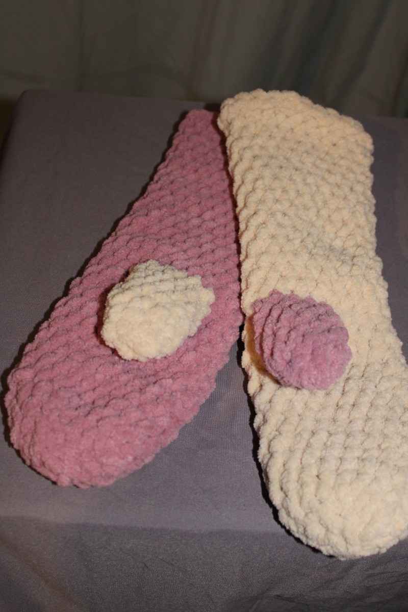 Ļoti mīksti un silti, tamborēti no Alize Puffy dzijas. Garāki nekā standarta dūraiņi.