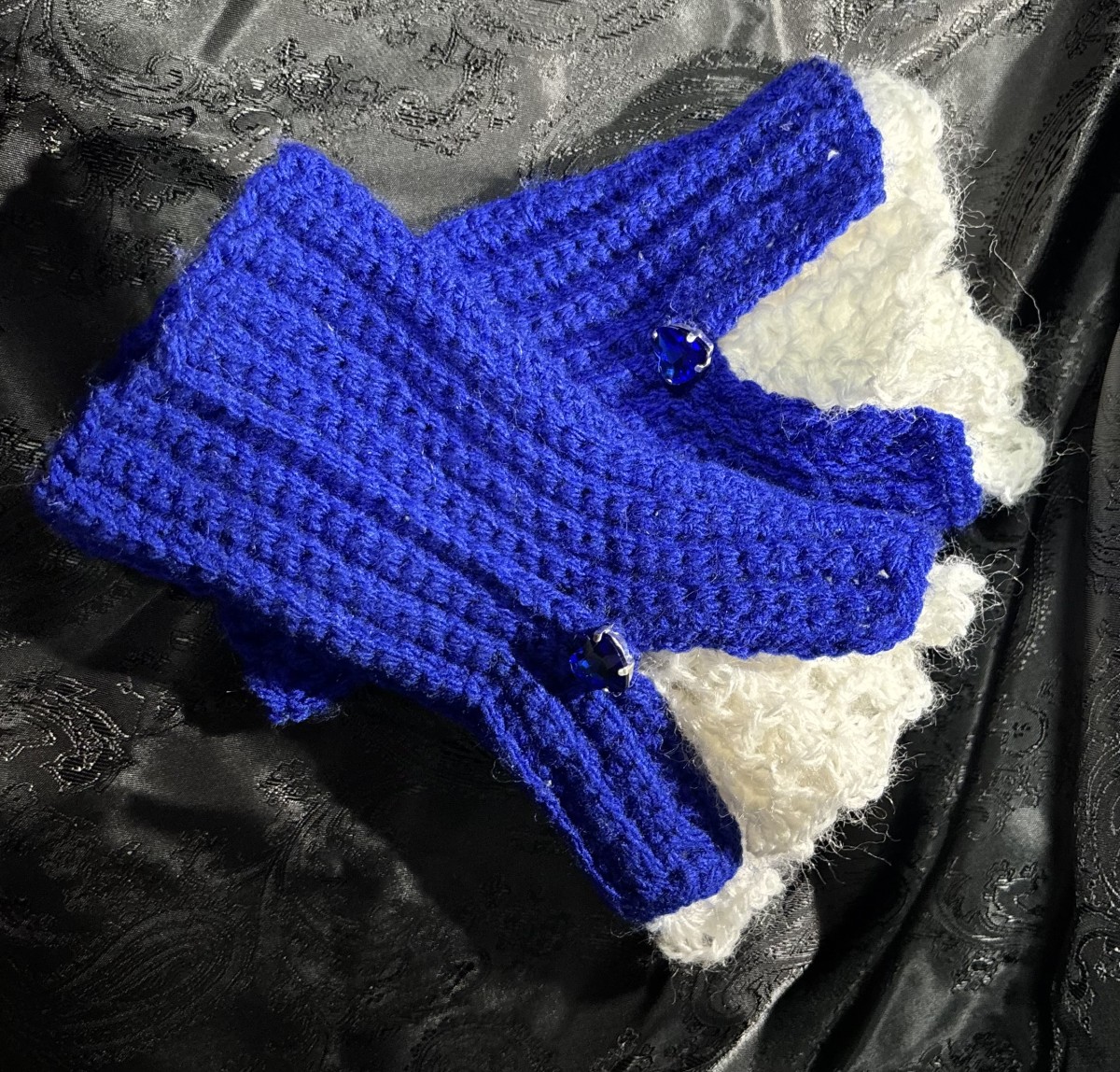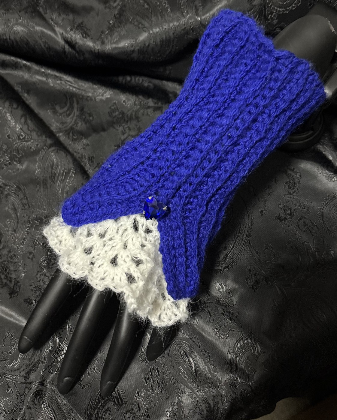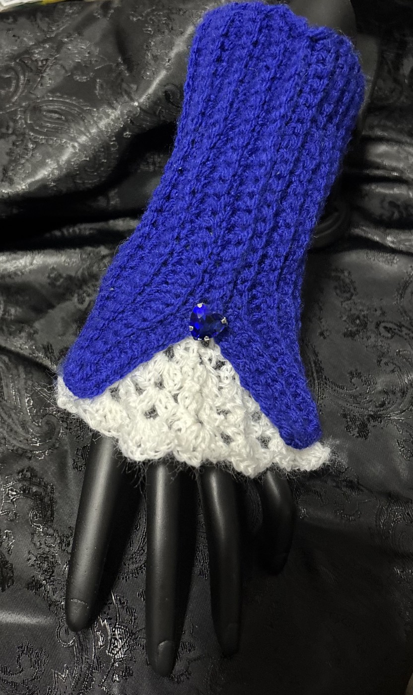 Tamborētas siltas aproces (manžetes) izgatavotas no akrīla dzijas (augšējā daļa) un kašmīra (mežģīņu daļa). Manžetes saglabās Jūsu rokas siltumā, tajā pat laikā ļaus viegli kustināt pirkstus. Ērti izmantot vadot transportlīdzekli, rakstot īsziņas, strādājot vēsās vietās vai apmeklējot pasākumus. Cimdiņi var būt lieliskā dāvana sev vai kādam īpašām cilvēkām.