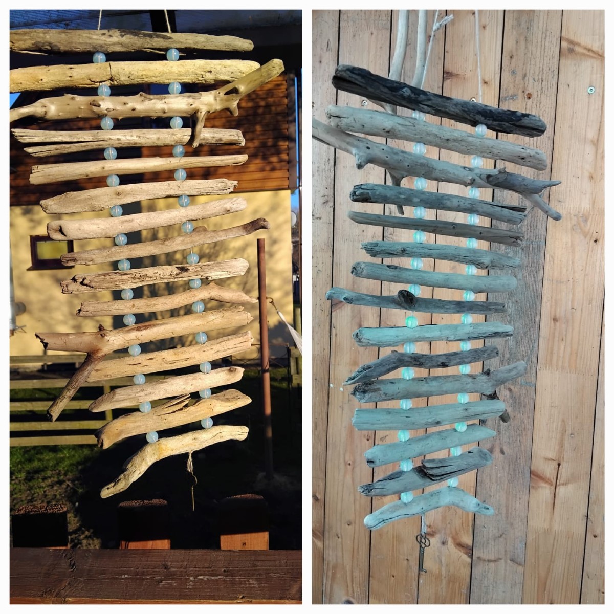 Darza dekors - jūras kociņi un dabīgas perles (mēness akmens - sievišķās enerģijas akmens), savienots ar līna auklas palidzību :))) Garums - 60cm.