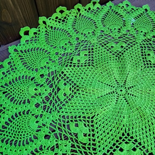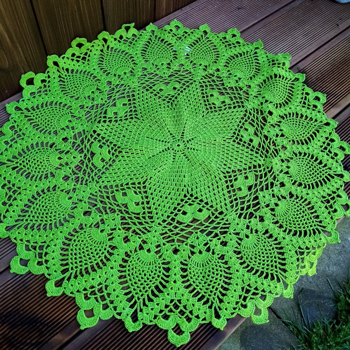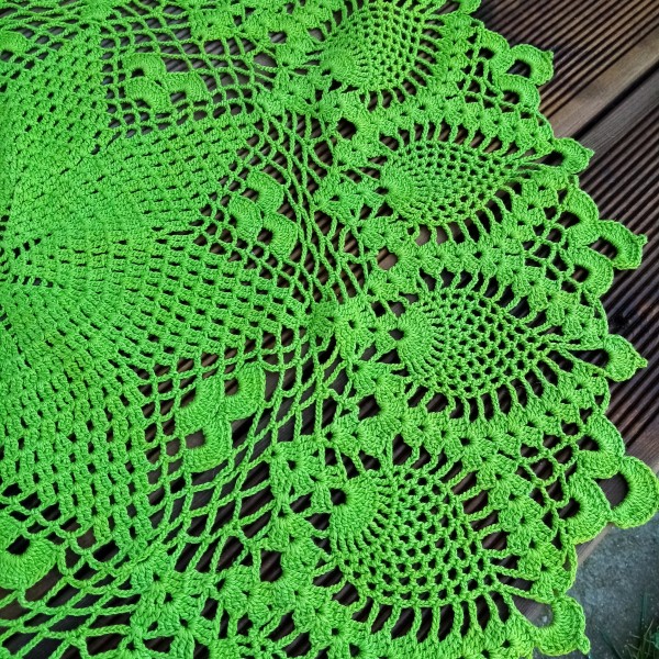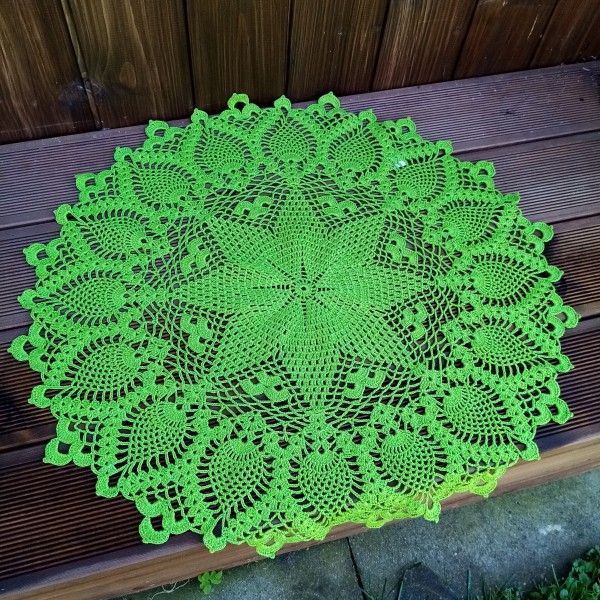No kokvilnas diegiem tamborēta galda sedziņa , diametrs 70 cm.