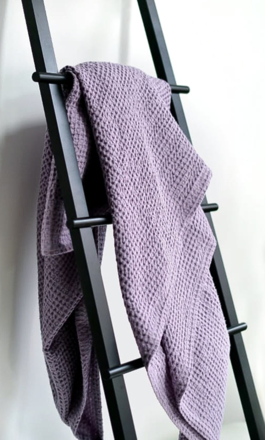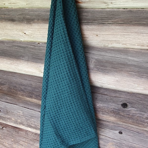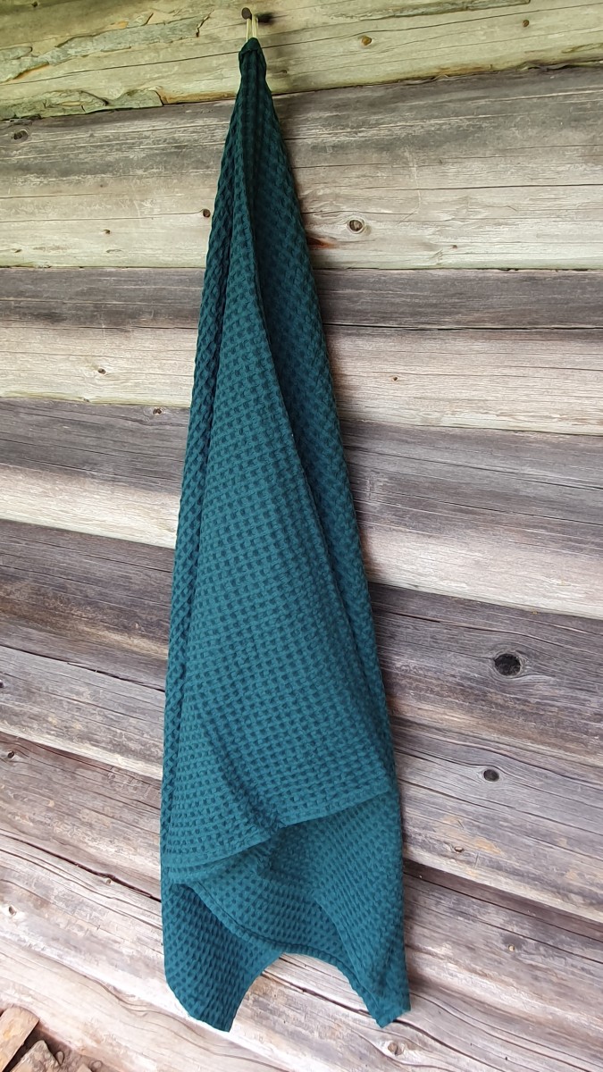 Sastāvs: 53% lins, 47% kokvilna - tie lieliski uzsūc mitrumu, viegli žūst un neuzkrāj baktērijas un dažādus aromātus. Dvielis ir sākotnēji jau izmazgāts un izžāvēts līdz ar to ieguvis savu skaisti pufīgo vafeļstruktūru. Pēc nākamajām mazgāšanas reizēm tas vairs nesarausies un to nav nepieciešams gludināt.