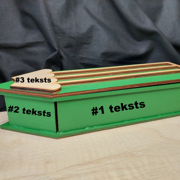 Koka kārba “Zīmulis” ar šokolādes konfektēm – personalizējama dāvana