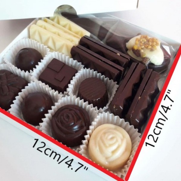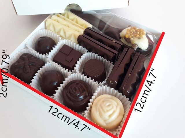 🍫 Konfekšu kaste ar bišu produktiem šokolādē (12x12 cm)