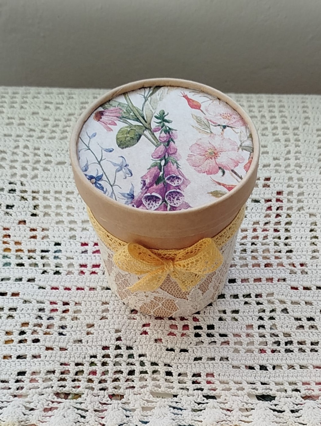 Smalks, rūpīgs un detalizēts roku darbs. Dekupēts vāciņš.