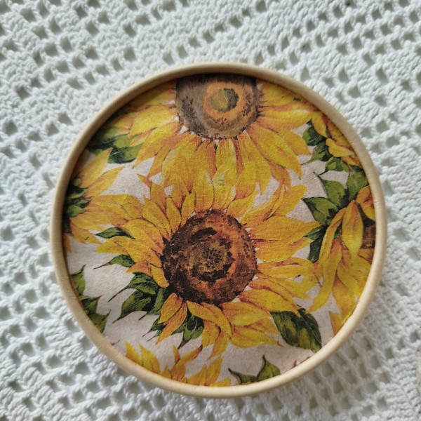 Vidējā tējas kaste ar dekupāžu (saulespuķes)