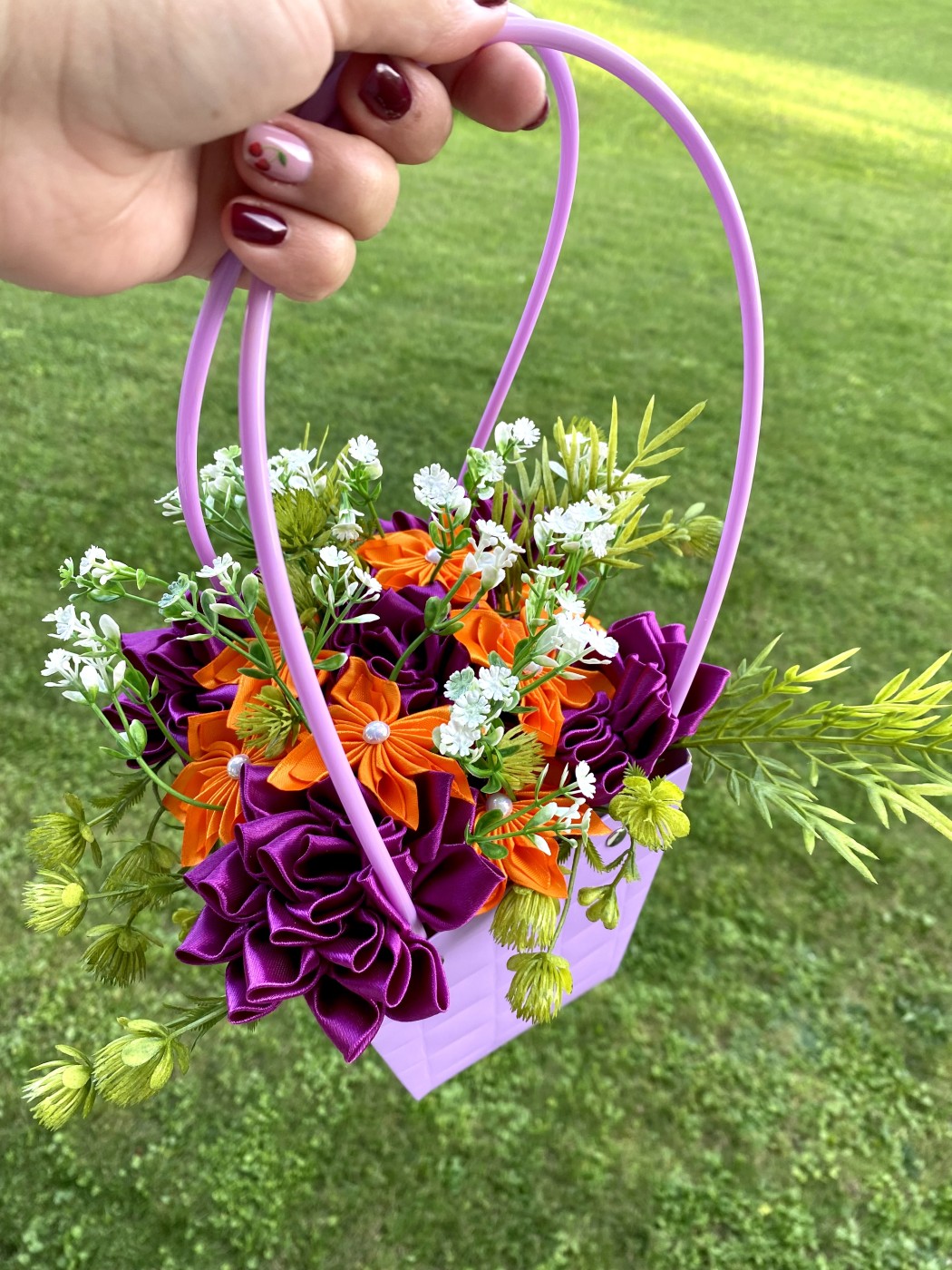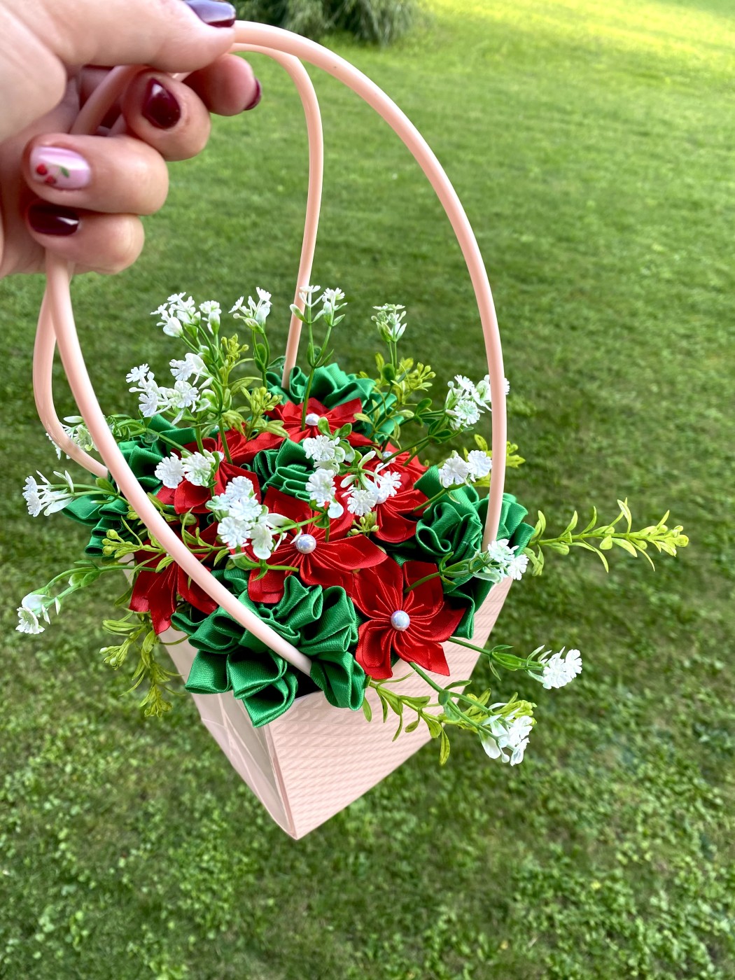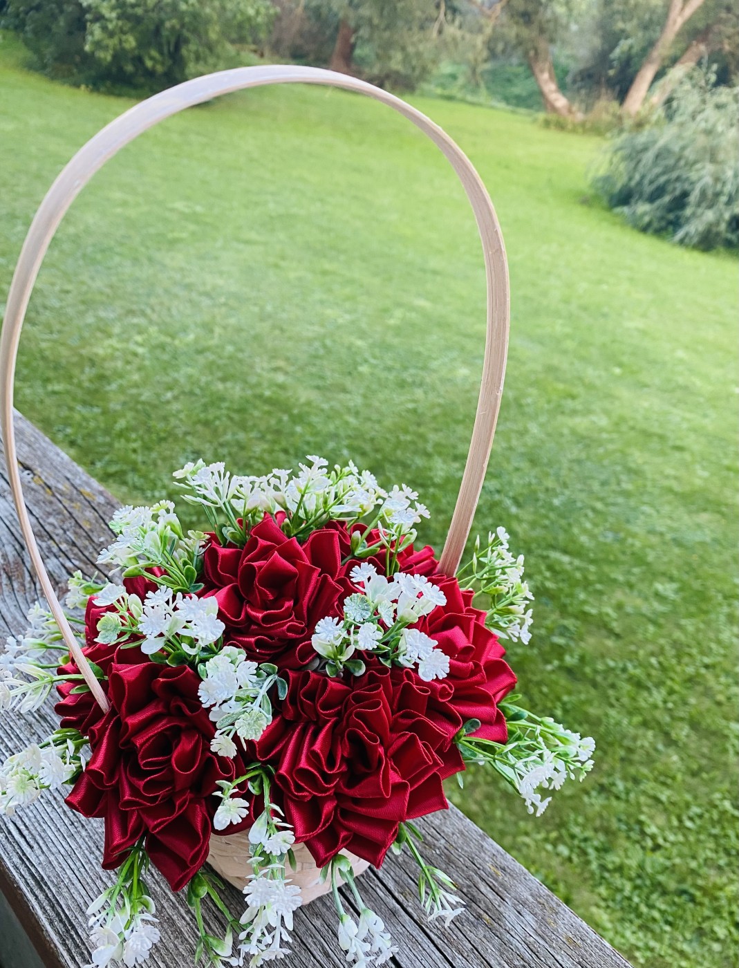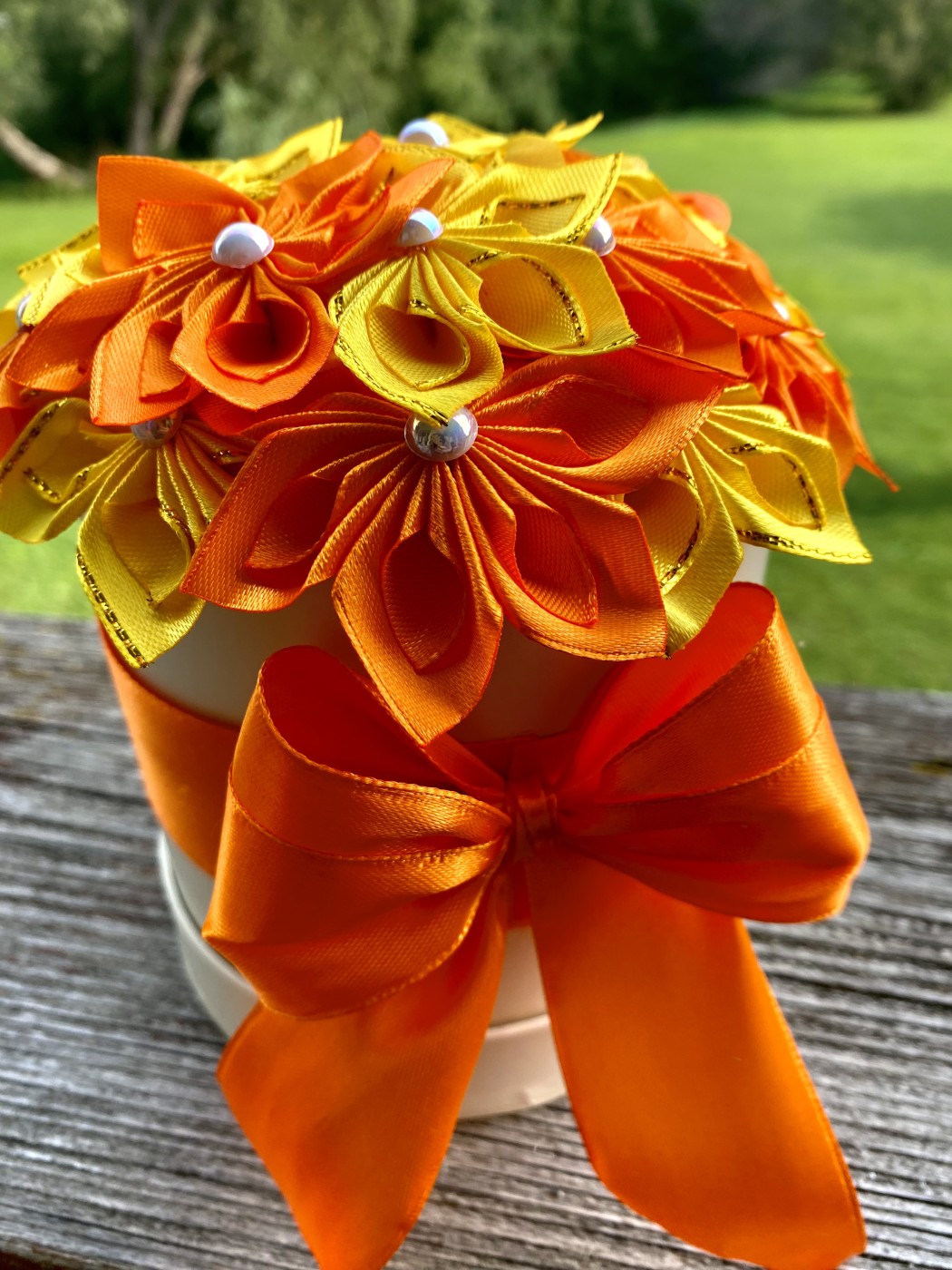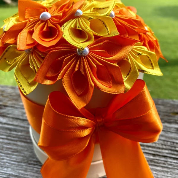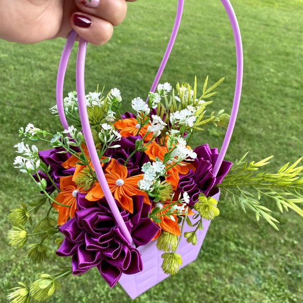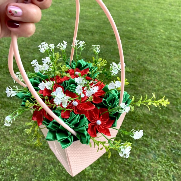 Satīna ziedi kastītē, iespēja izgatavot arī vēlamās krāsās.