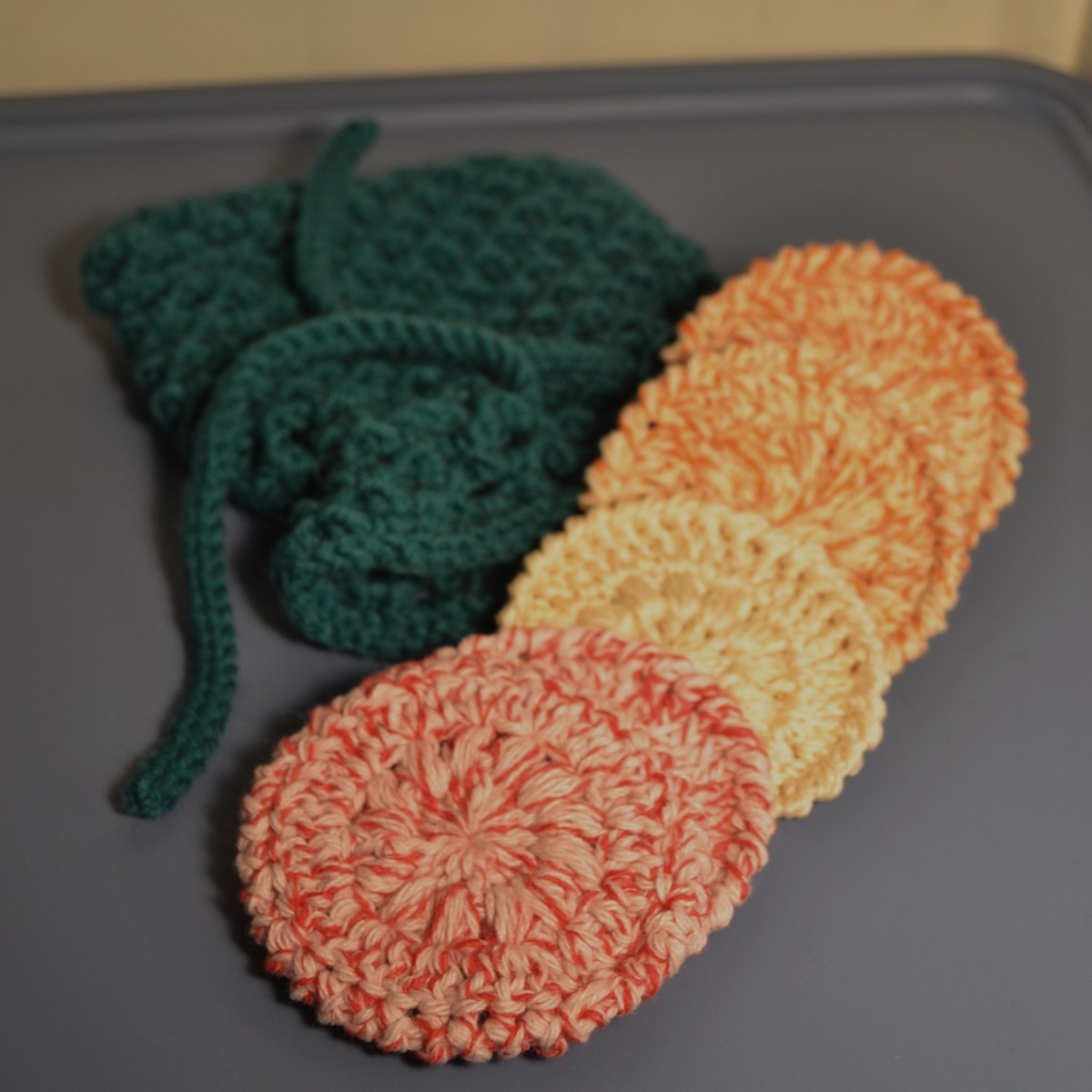 šis tamborēto kokvilnas plāksnīšu komplekts (5 gab.) atgādina jūras gliemežvāciņus – rozā, oranži un bēši. sajūtu papildina tirkīzais uzglabāšanas maisiņš, kura zvīņu raksts līdzinās nāriņas astei..