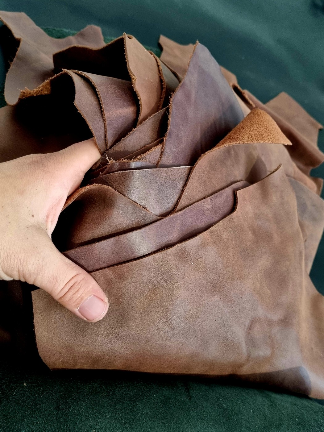 Brūni crazy horse ādas atgriezumi - 2kg paka