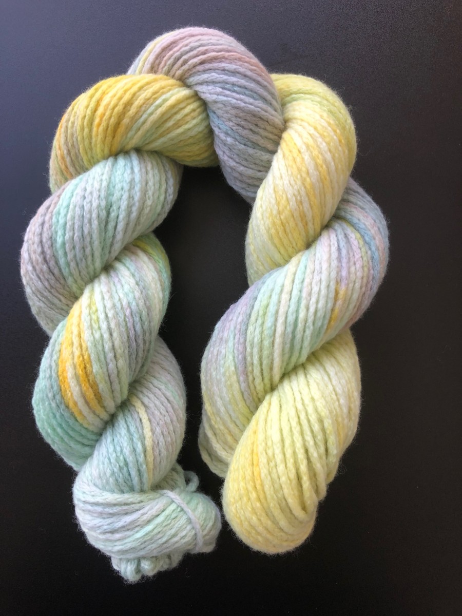 Merino vilnas dzija pavasara toņos ar krāsu pārejām. 3 fices kopā 370 grami, katrā ficē ne mazāk kā 200 metri