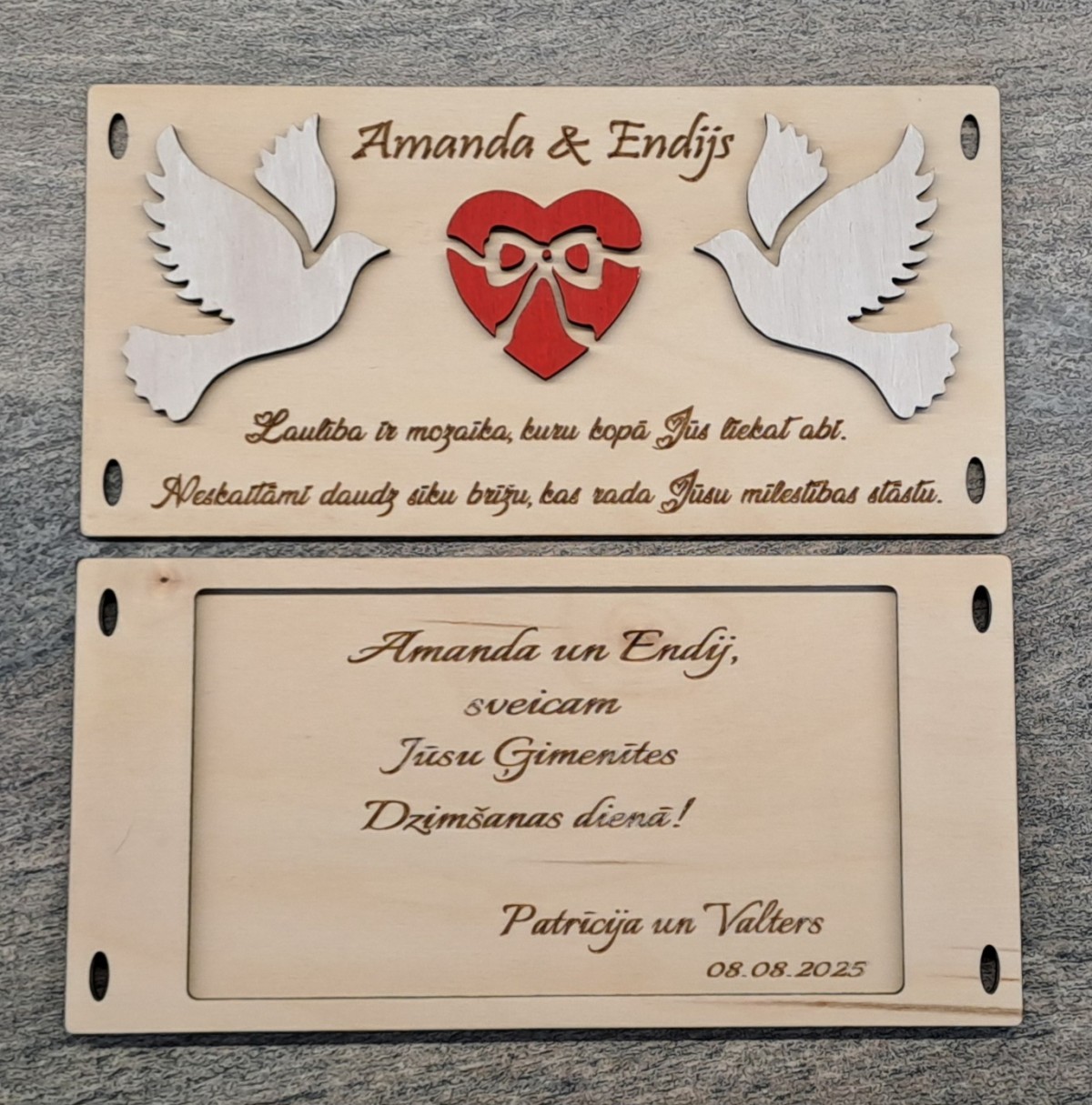 Naudas aploksne naudiņai vai kādai dāvanu kartei. Izmērs 20cm × 10,5cm. Vēl visādus darbiņus var apskatīt manos Facebook profilos: "Armands Apaļka" un "Armanda kociņi".