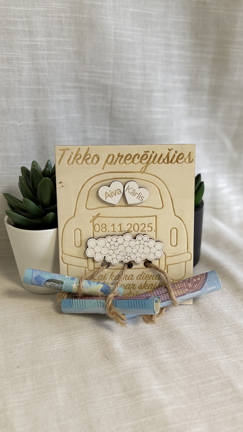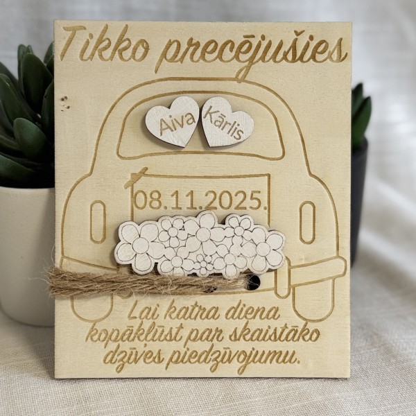 “Tikko precējušies” Koka plāksne naudas dāvināšanai