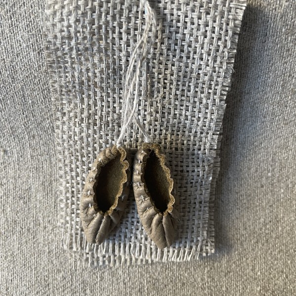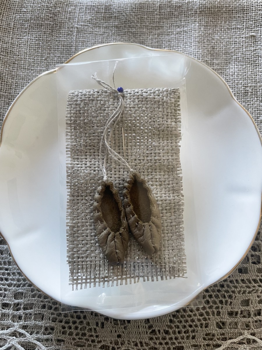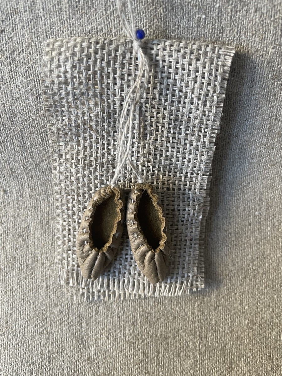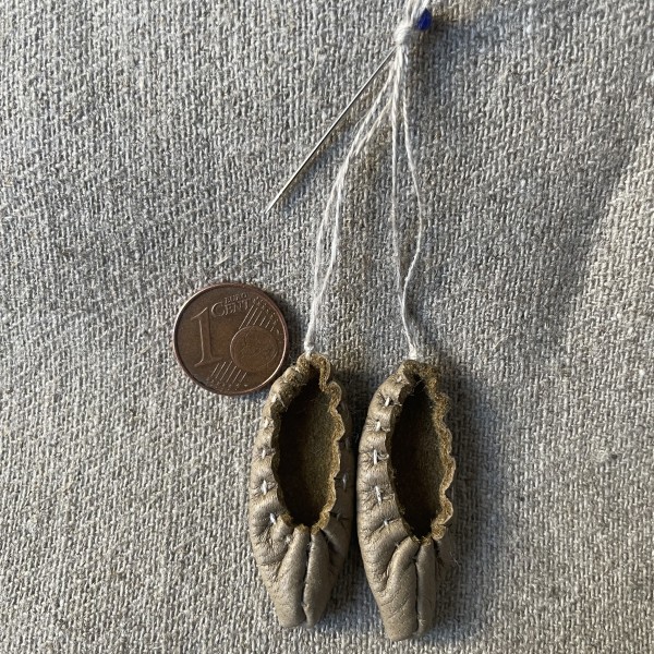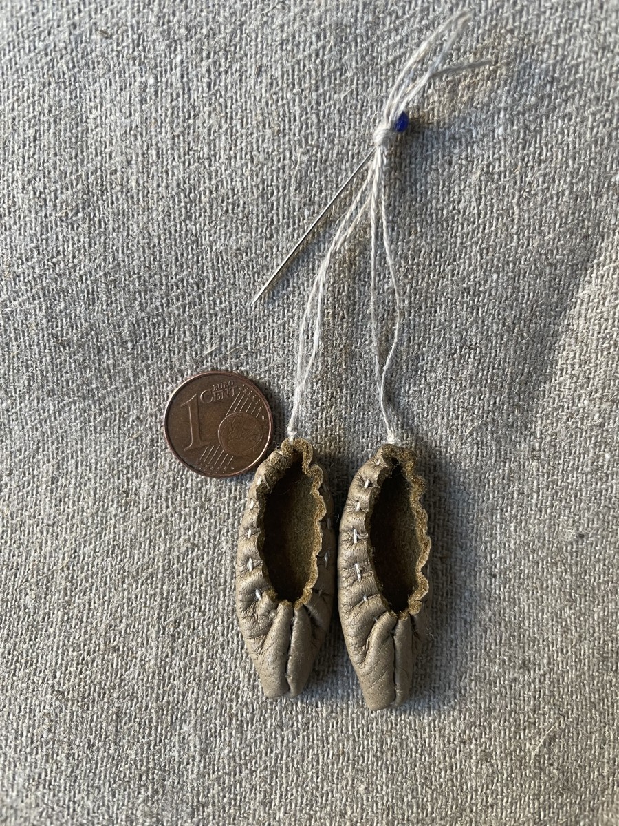 Mazītiņas ādas pastaliņas (3,5cm) no dabīgās ādas, linu aukliņā, piespraužamas ar kniepadatu. Iespējami dažādi toņi.