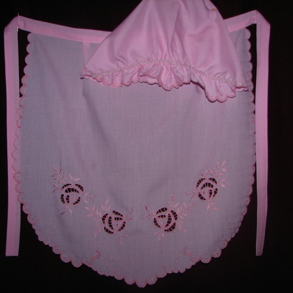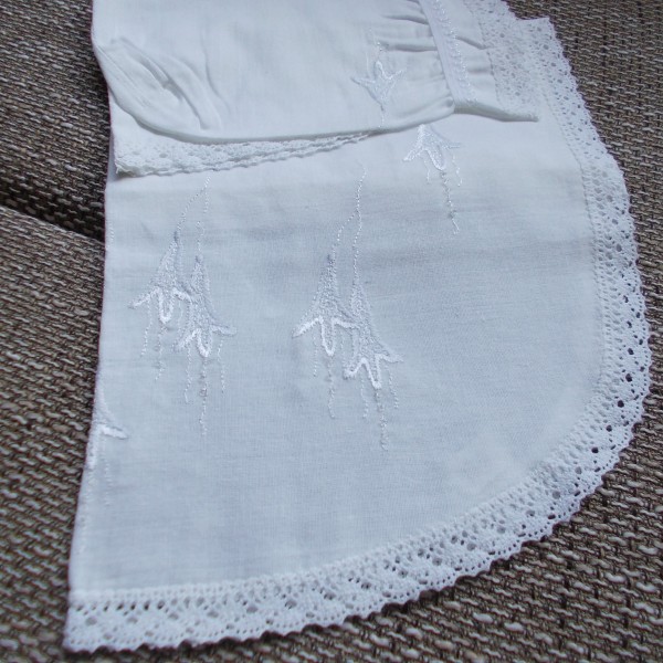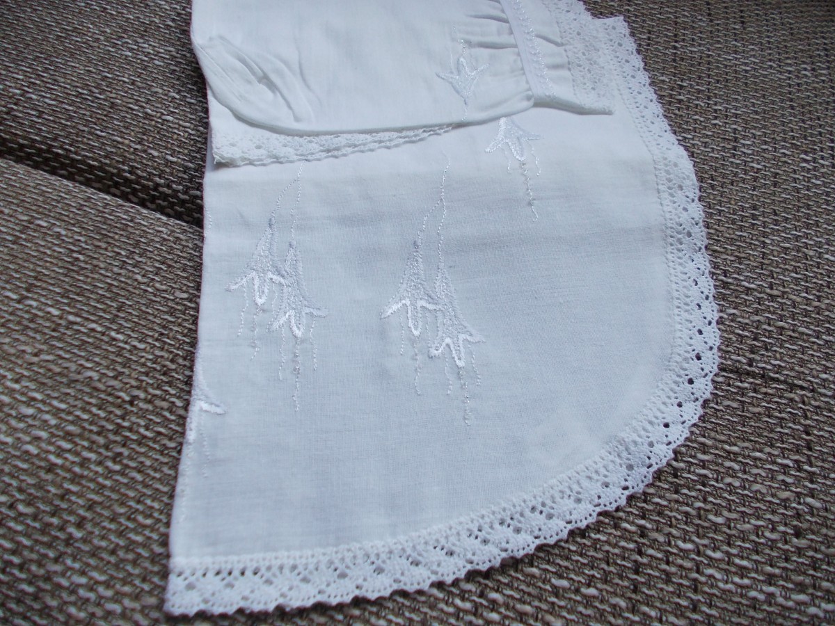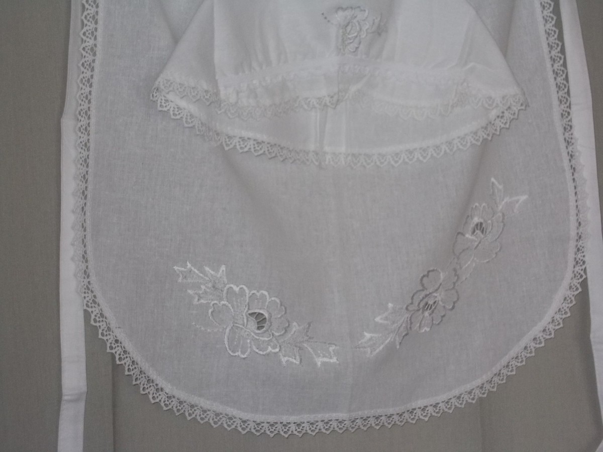 Izšūtas aubes un priekšauti micošanai. Kokvilna, izšūts ar zīdu, un pērlēm, kokvilnas mežģīmes, balti un krāsaini komplekti,