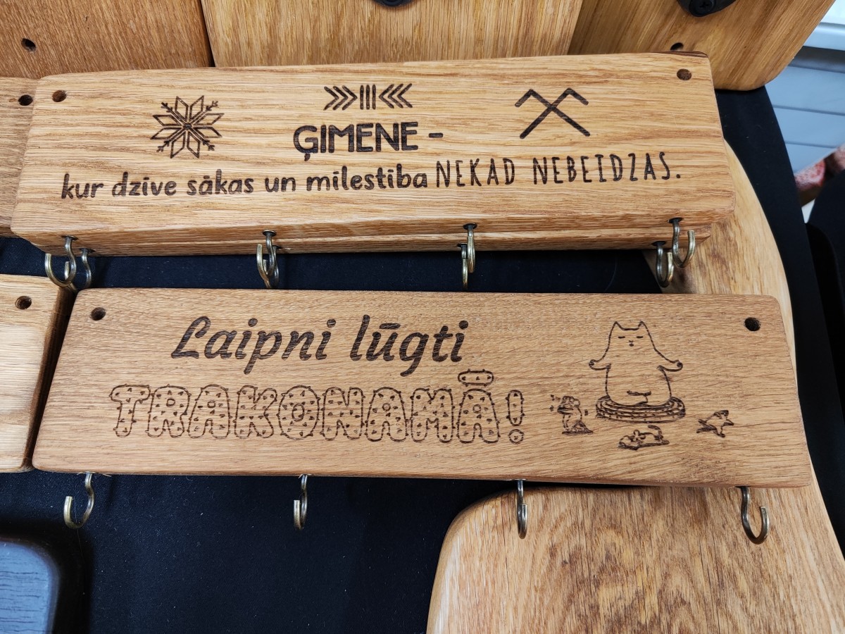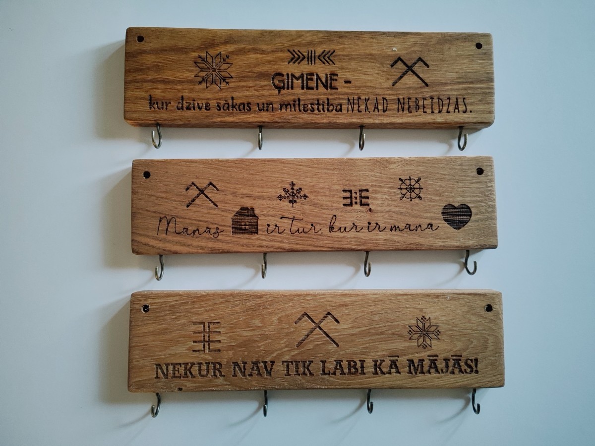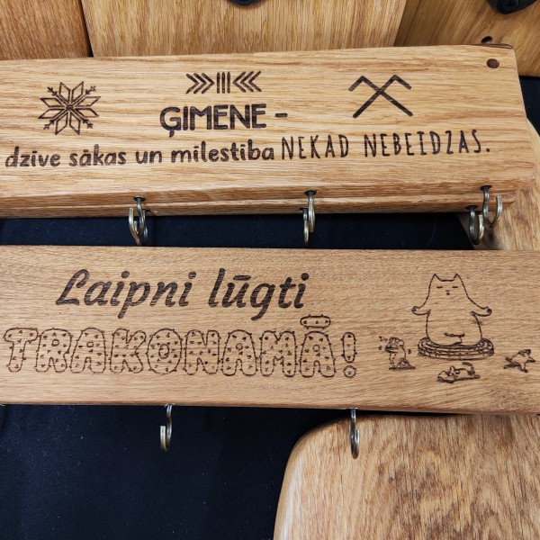 Ozola stends atslēgām ar gravējumu. Iespēja personalizēt ar Jums vēlamo tekstu un zīmējumiem, piemēram ģimenes uzvārdu/vārdiem.