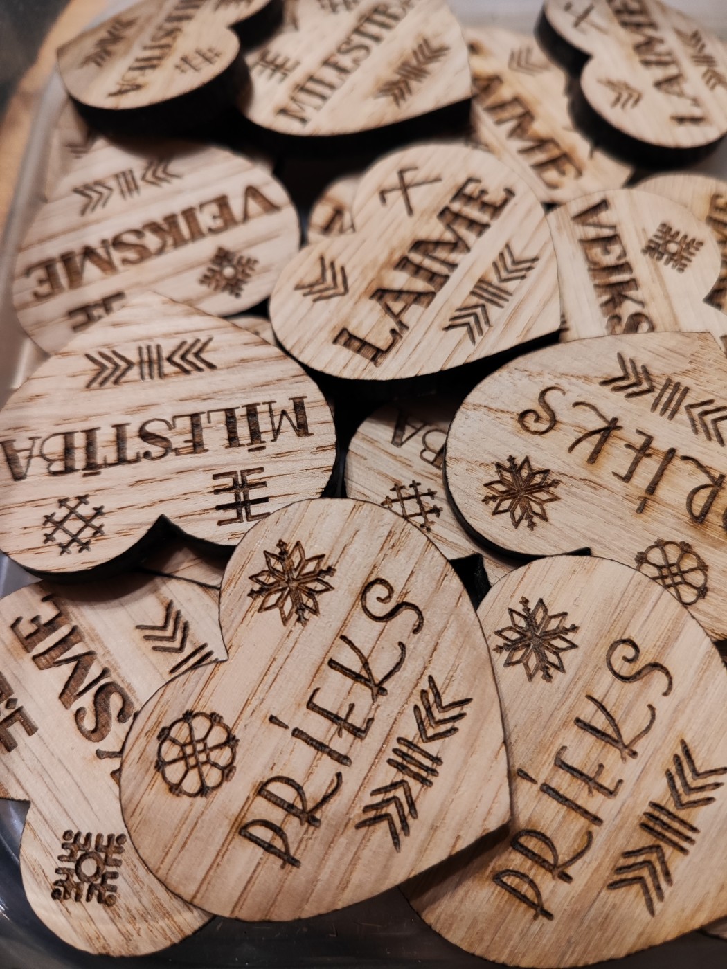 Sirsniņas ar 25 dažādiem vēlējumu vārdiem.