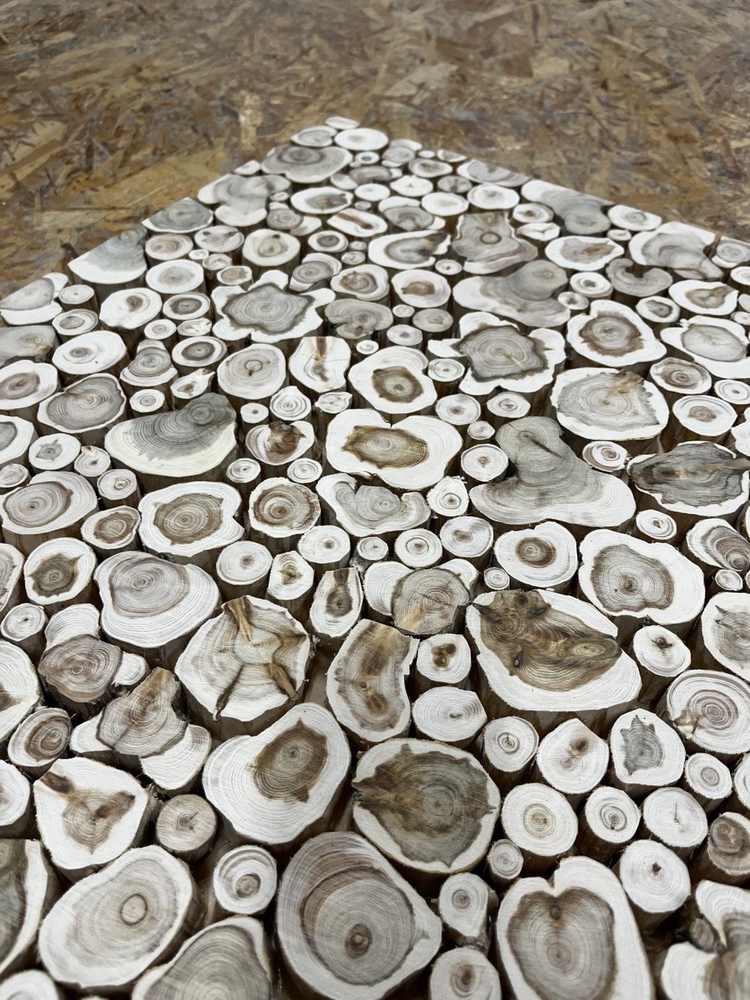 Ienesiet interjerā dabas siltumu un autentisku raksturu ar roku darinātu kadiķa koka paneli. Tas veidots no rūpīgi atlasītiem kadiķa zaru griezumiem, kas izkārtoti mozaīkas stilā, radot unikālu struktūru un izteiksmīgu dizaina akcentu jebkurai telpai.