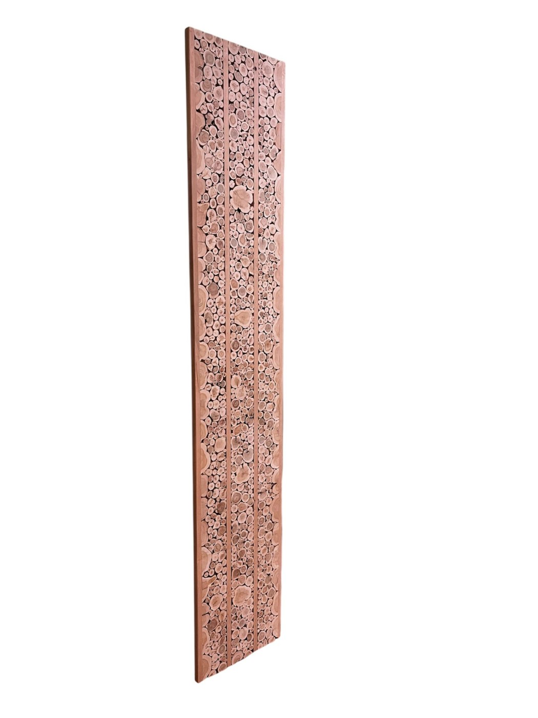 Pārdodu unikālu roku darba kadiķa (Juniper) paneļa kompozīciju ar melnalkšņa karkasu/detalizāciju. Panelis veidots no koka ripām, kas rada izteiksmīgu tekstūru un dabisku 3D efektu — lieliski izskatās modernā, skandināvu, lofta vai pirts/spa interjerā.