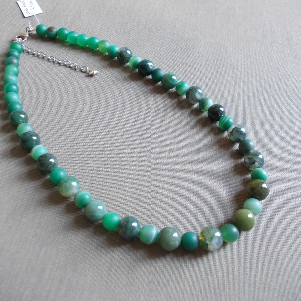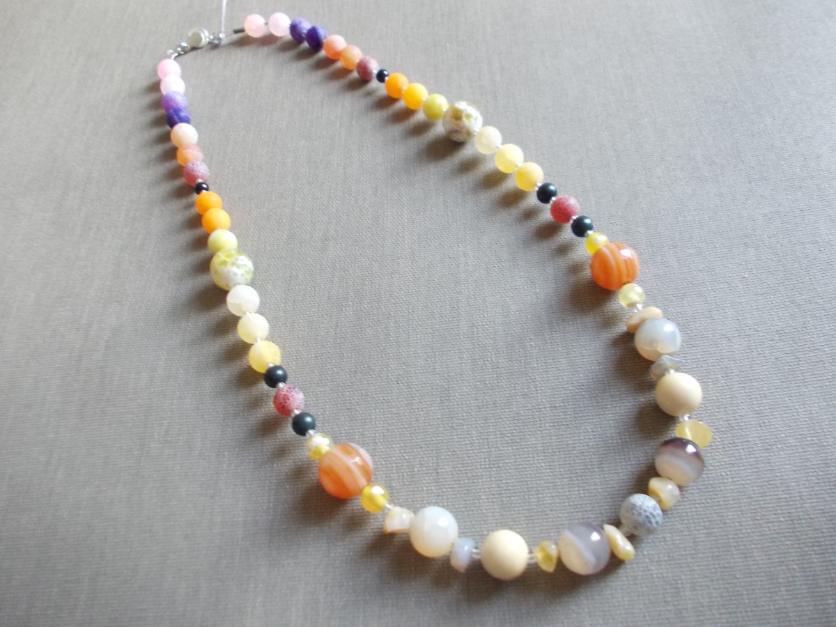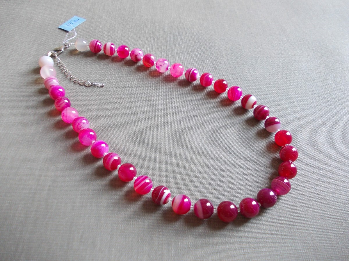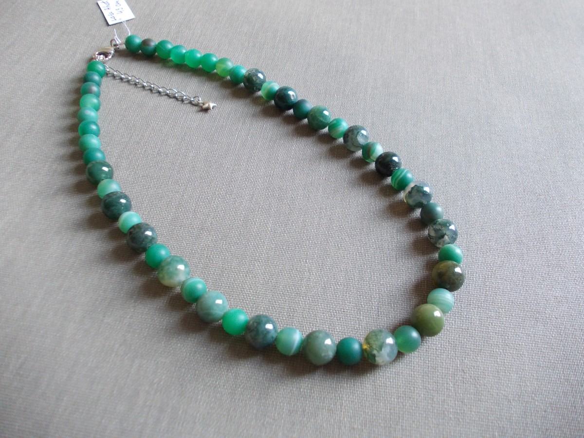Ahāta kaklarotas no dažādām pērlēm.
