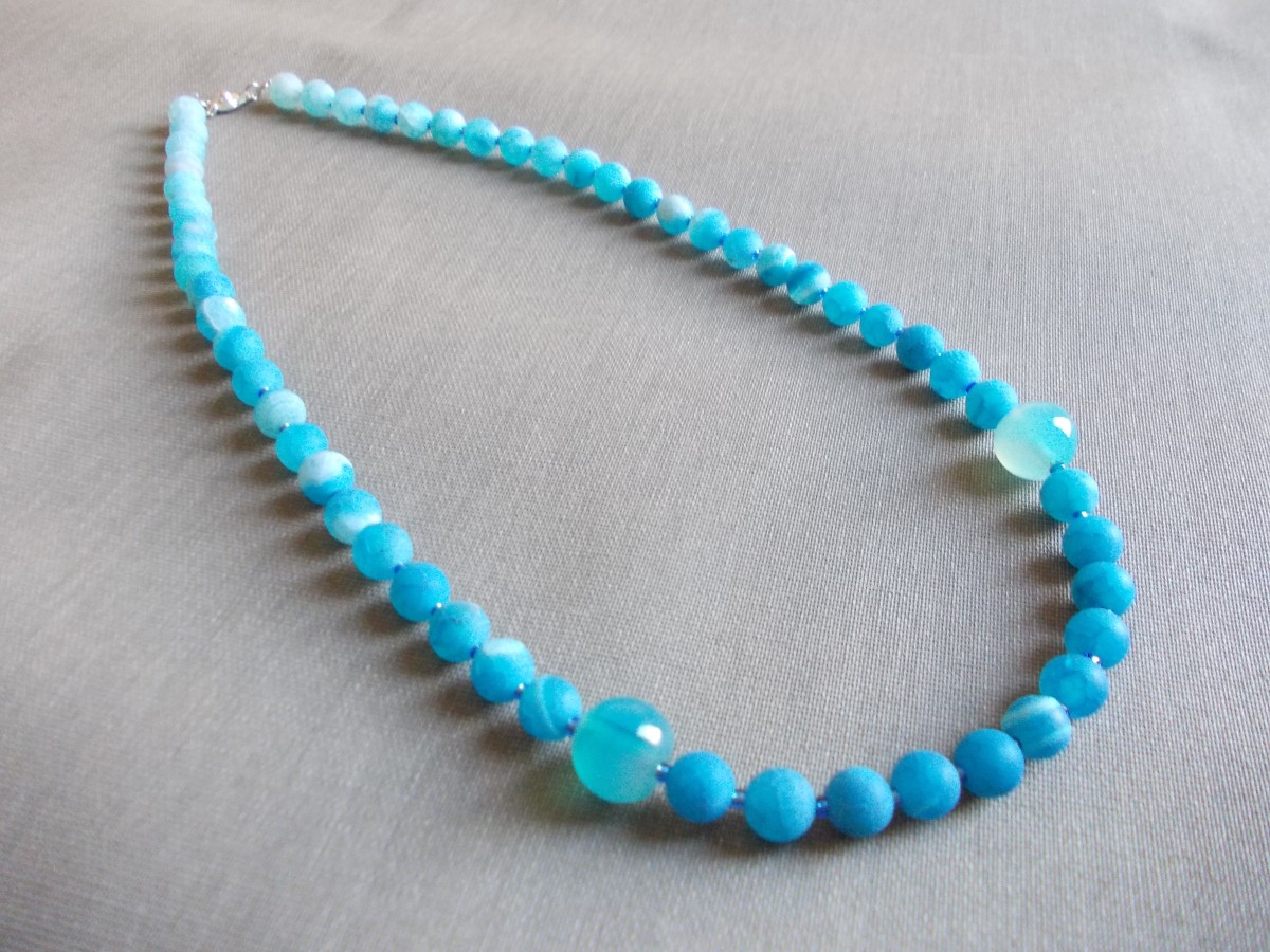 3. foto zilas pērles nepulētas un pulētas, 43 cm, cena 42.00 eiro.