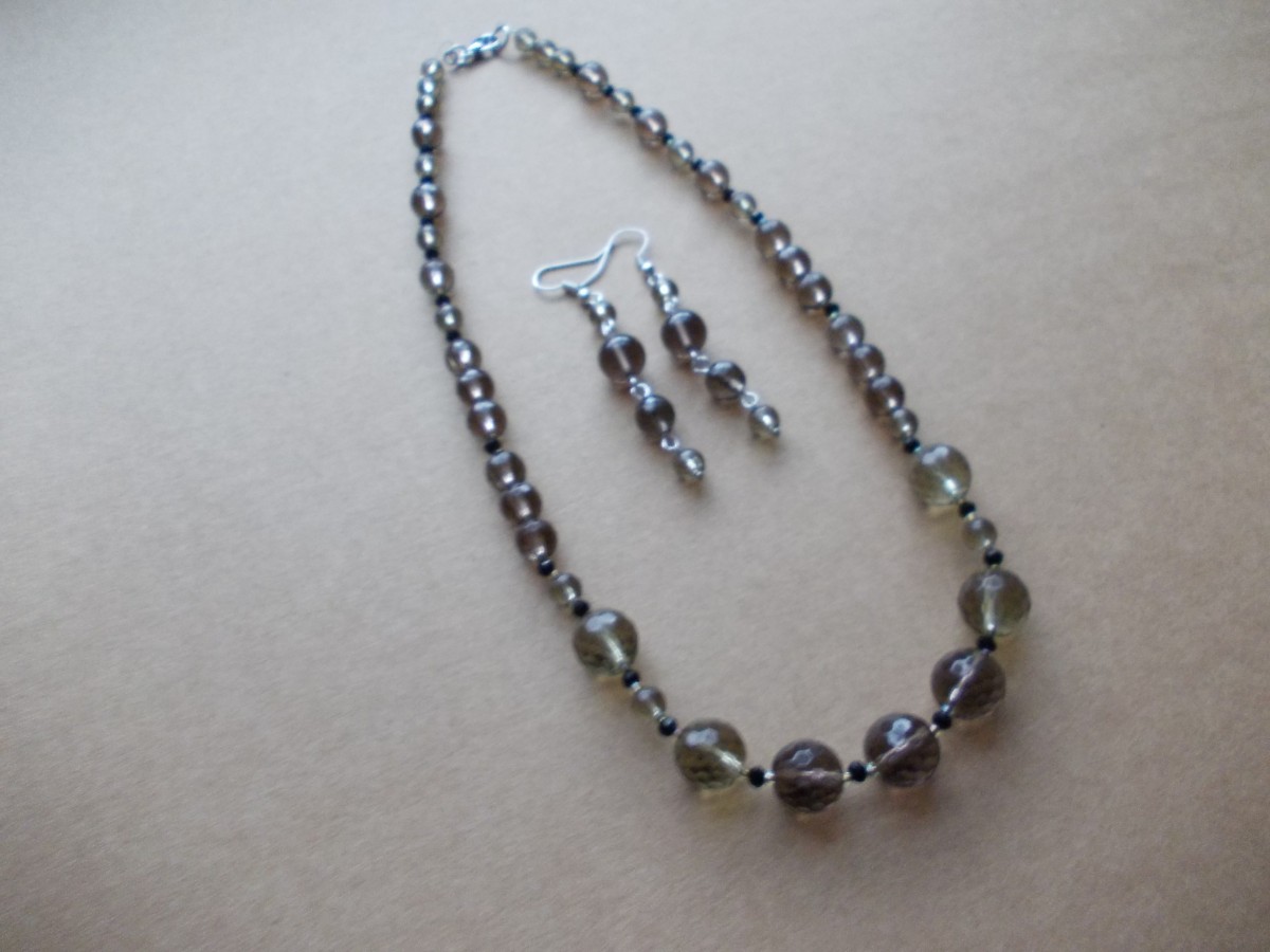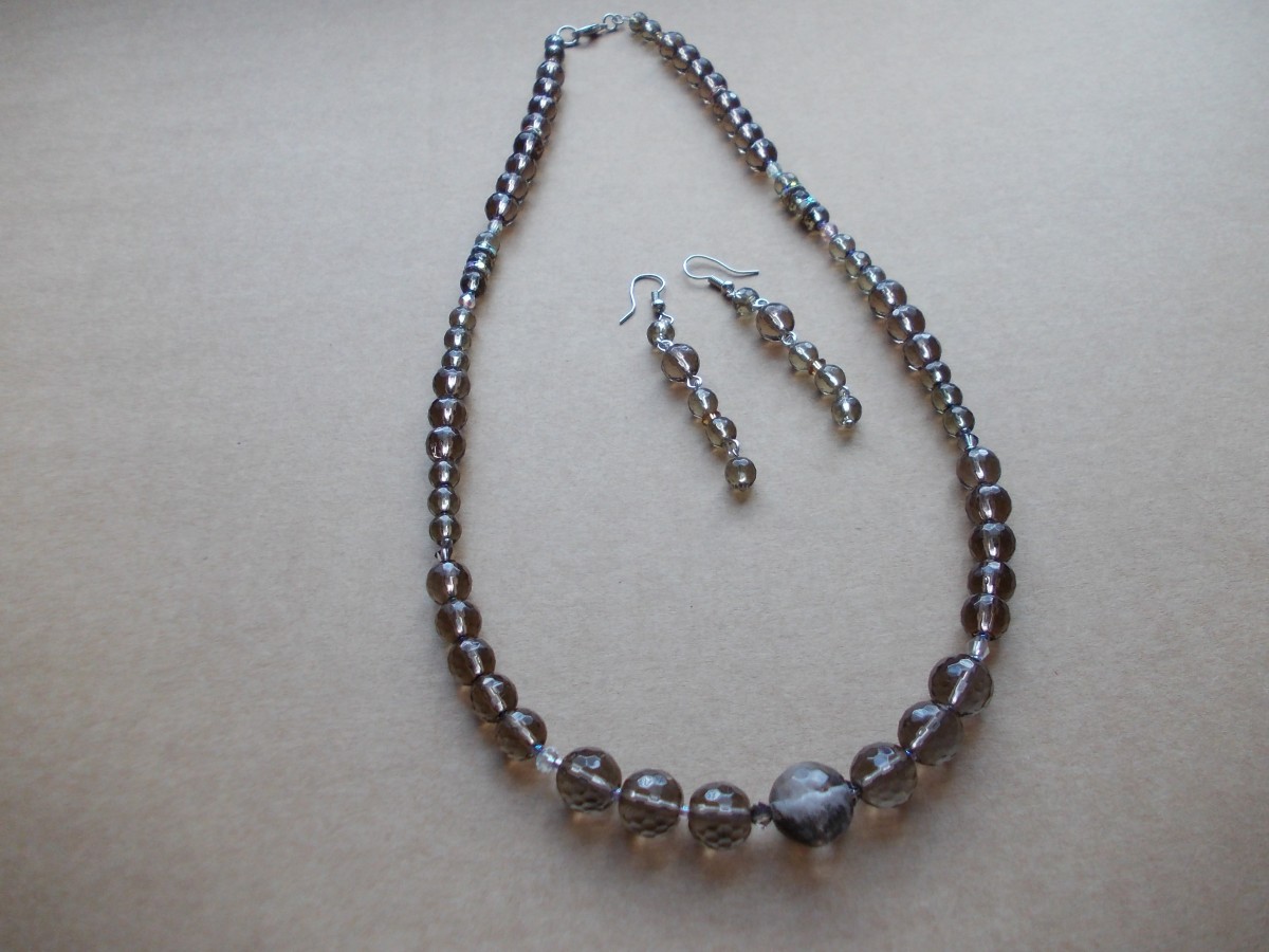 1. foto 54 cm gara, 4mm - 12mm pērles, starplikas un AB kristāli , cena 51.00 eiro, auskari 12.00 eiro,