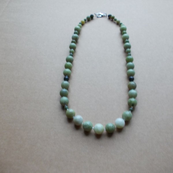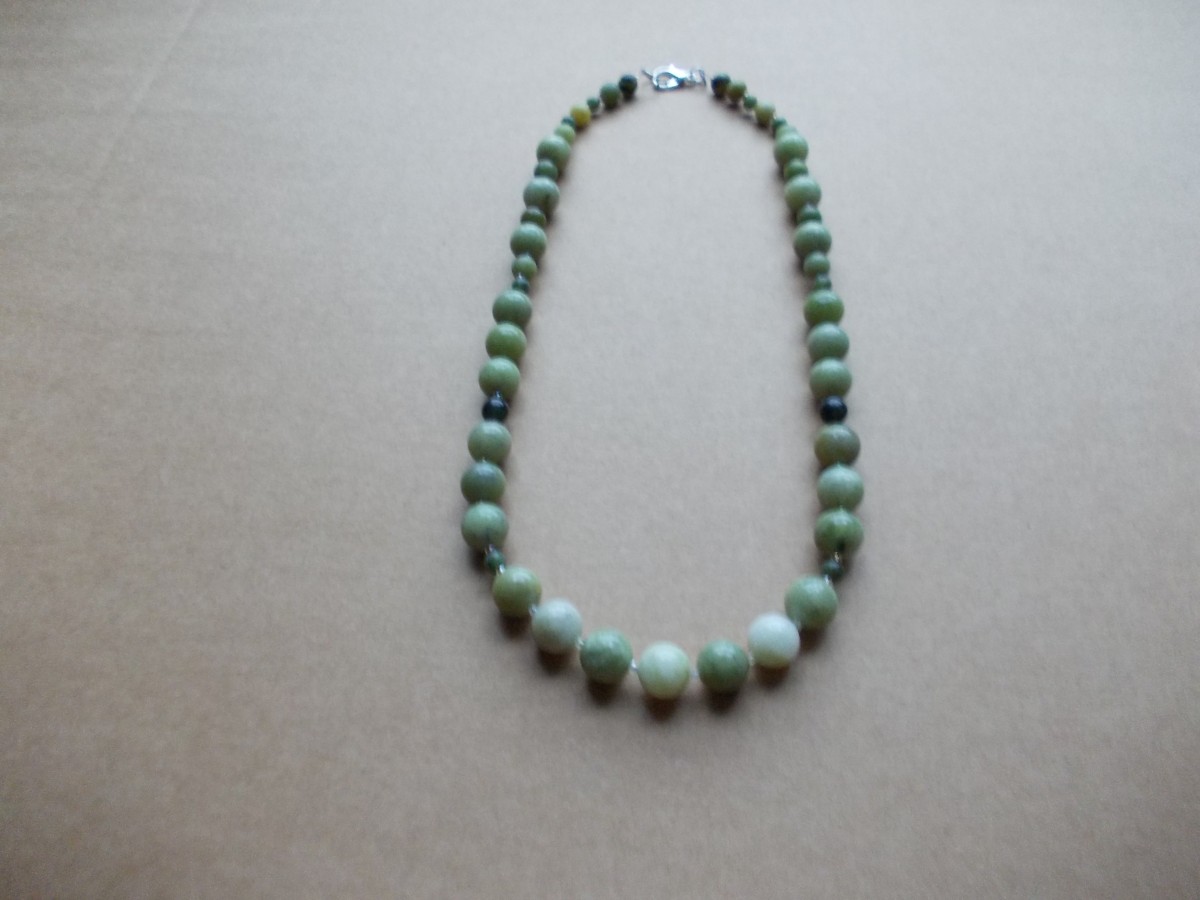 Galvenais - foto dažādas formas un lieluma nefrīta pērles, AB kristāli, pērles, 47 cm gara, cena 64.00 eiro, 1. foto zaļās un citronu dzeltenās nefrīta pērles, 47 cm gara, cena 64.00 eiro, 2. foto dažādu toņu Jade Persia nefrīta pērles, AB kristāli, 46 cm gara,