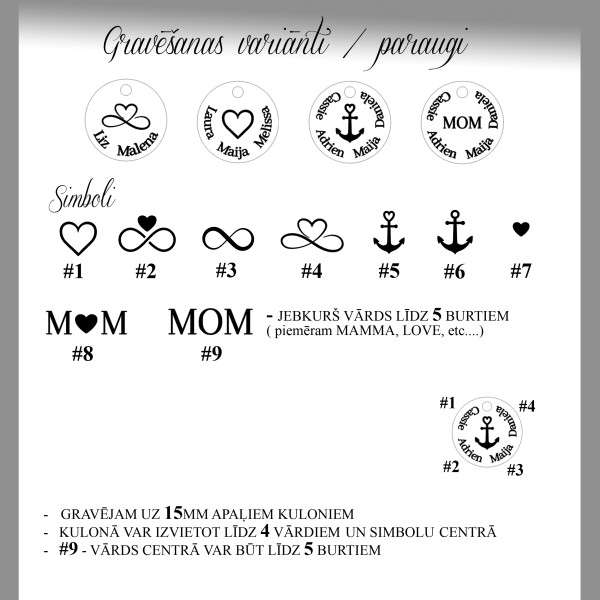 Personalizēta kaklarota ar vārdiem un simbolu centrā. Lieliska dāvana mammai vai vecmāmiņai Mātes Dienā