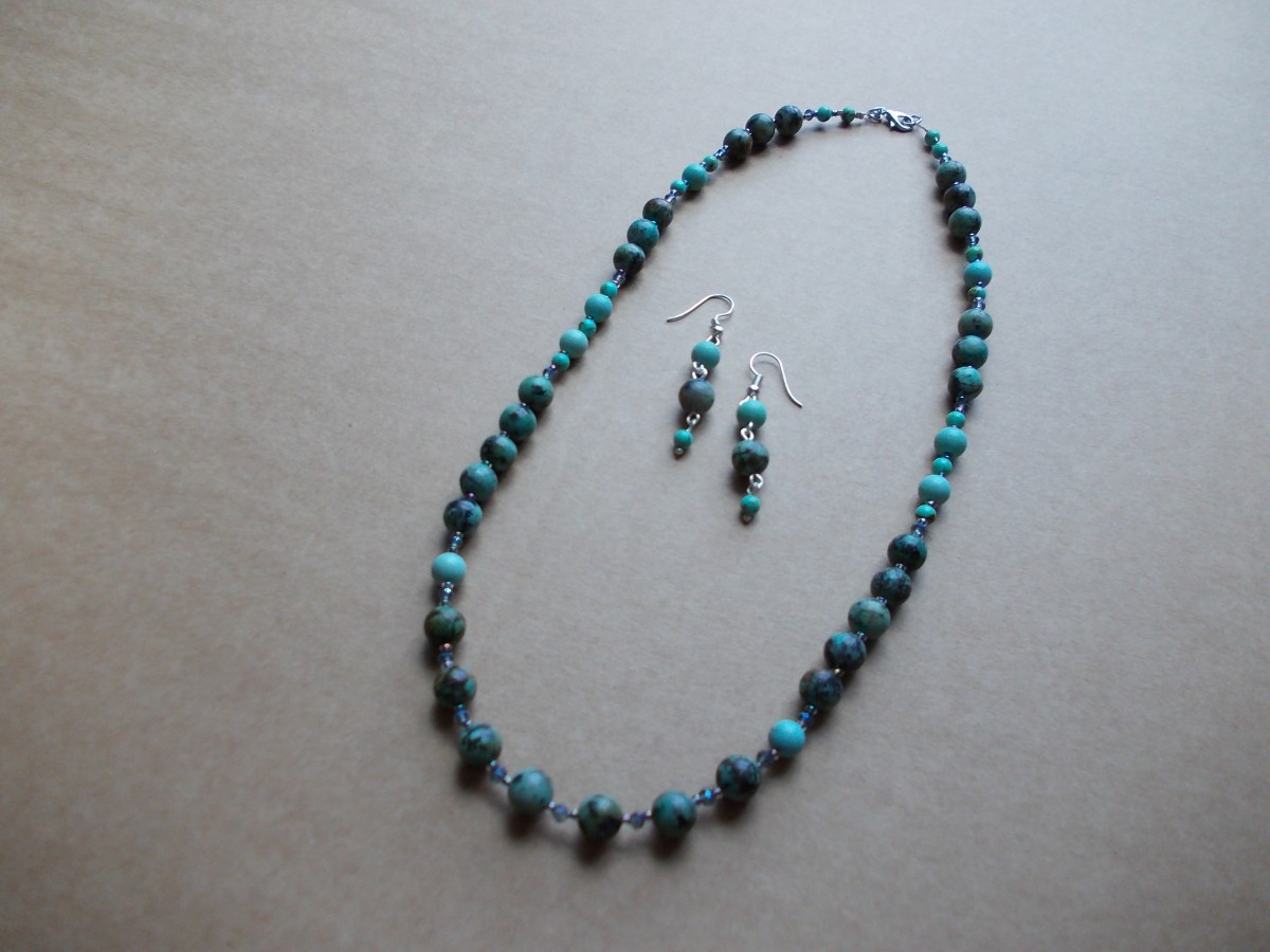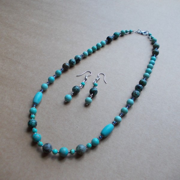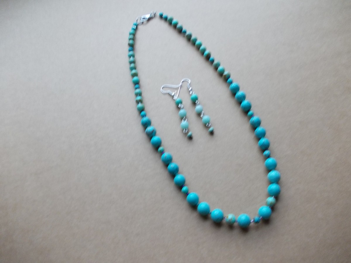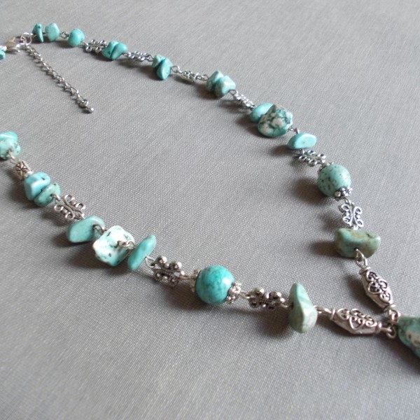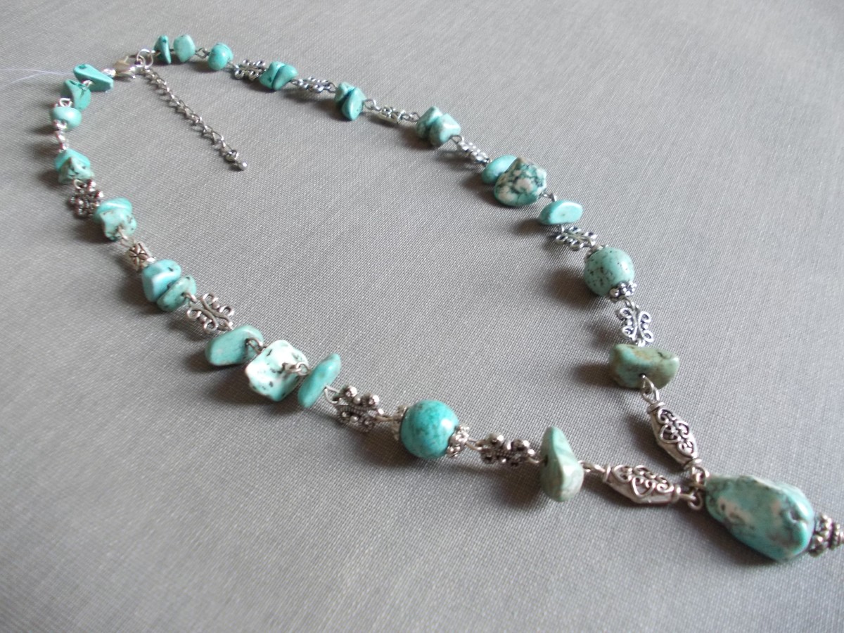 3. tirkīza gabaliņi savienoti ar starplikām, 47 cm gara, cena 49.00 eiro.