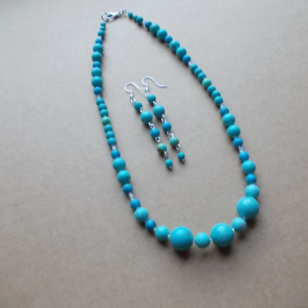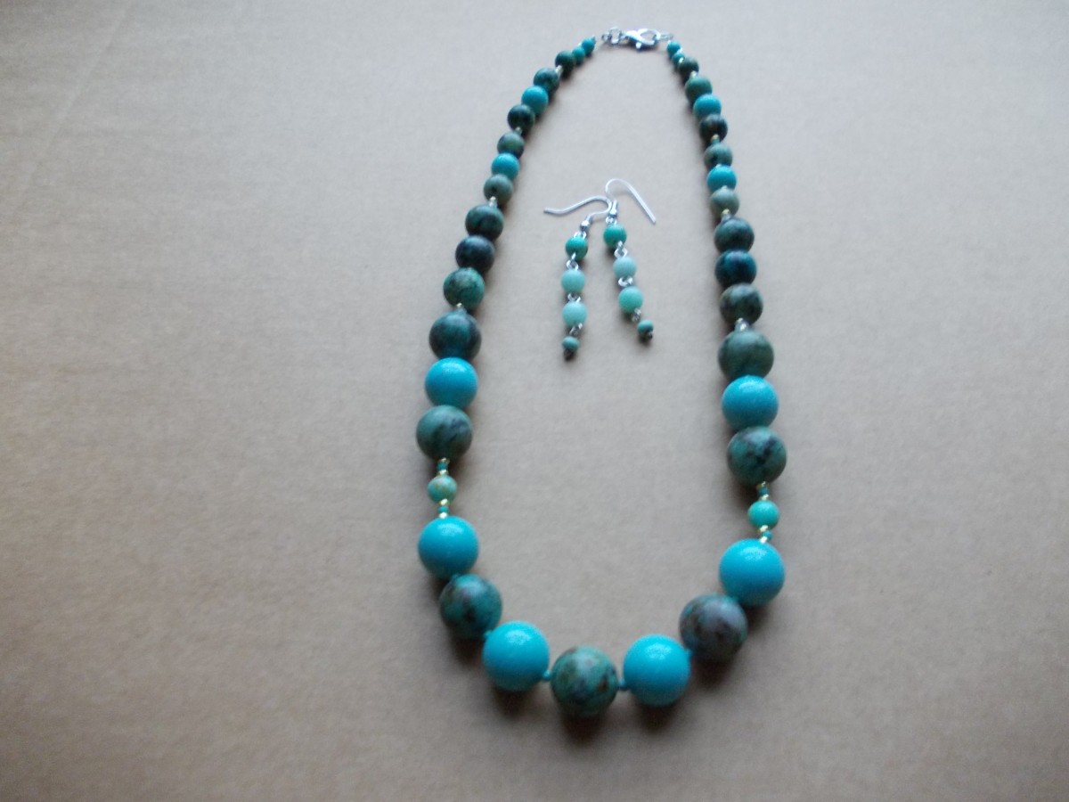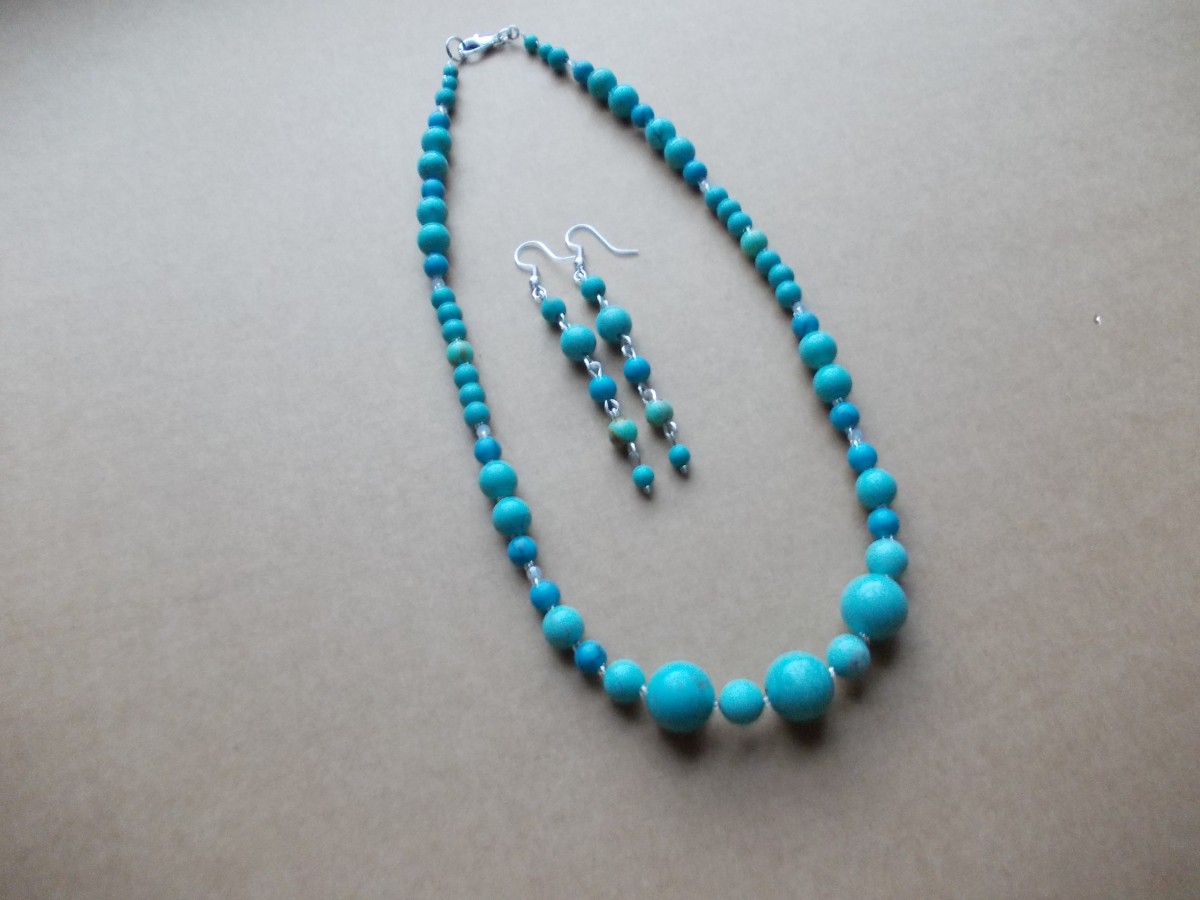 galvenais foto Izmantotas tirkīza pērles 5 mm, 6 mm un 10 mm, zilas tirkīza un tumšas āfrikas tirkīza pērles, 46 cm gara,