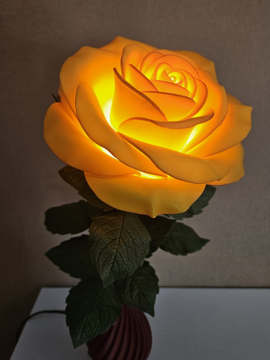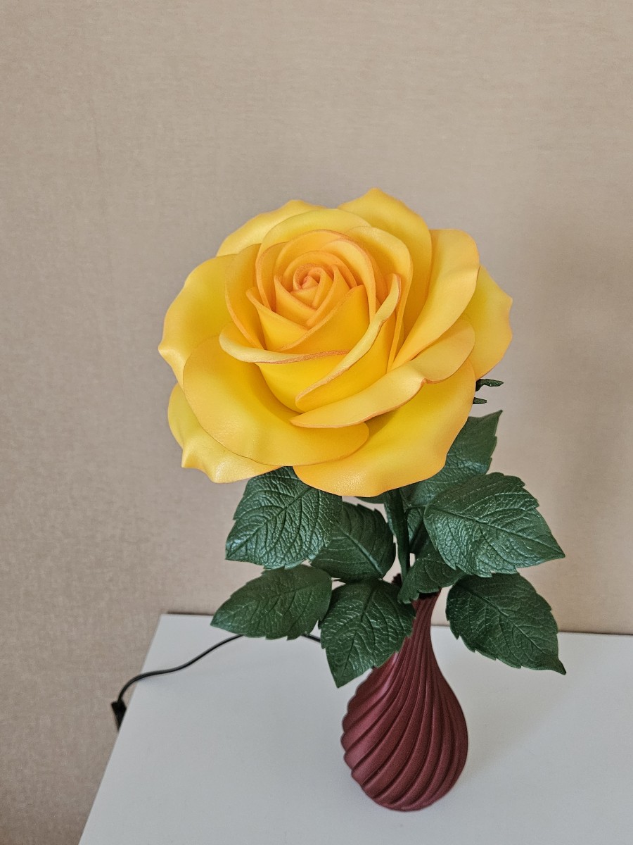 Šķiet neticami, ka šāda maza rozīte, novietota uz naktsskapīša vai kumodes, spētu radīt telpā siltu, mājīgu un romantisku noskaņu, bet tā tas tiešām ir! Dzeltenā krāsa izgaismojas ļoti siltā un skaistā tonī. Arī neieslēgta tā kalpos kā košs un pamanāms interjera elements. Katra ziedlapiņa tonēta un ar rokām veidota, Būs piemērota arī kā mīļa dāvana īpašam cilvēkam.