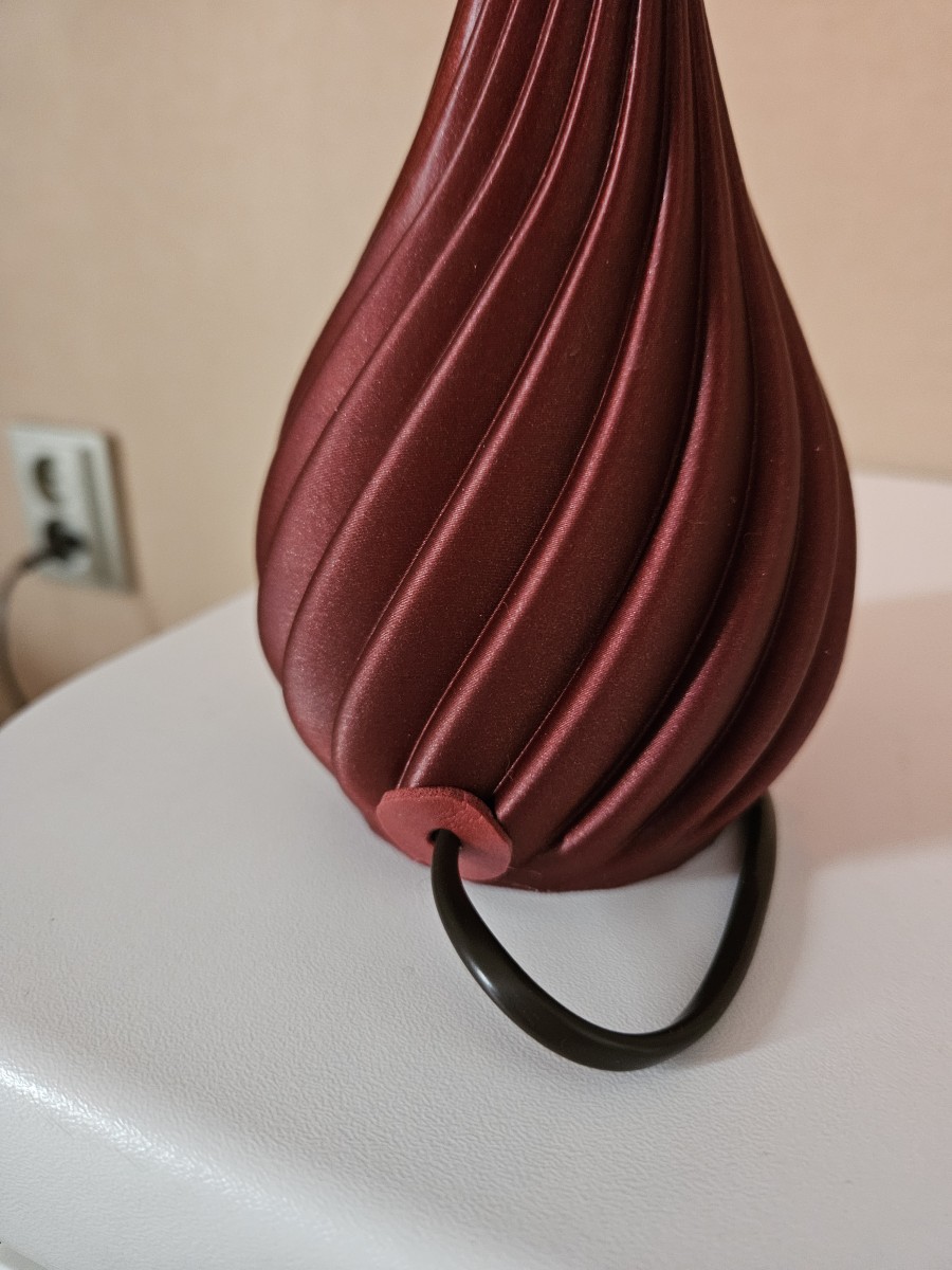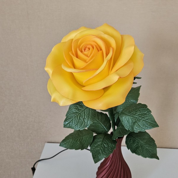 Lampiņa izgatavota no izolona, tās augstums ir 47 cm, zieda diametrs- 17 cm. Rozītes viducītis ir atskrūvējams, lai nomainītu spuldzīti ( 3W)