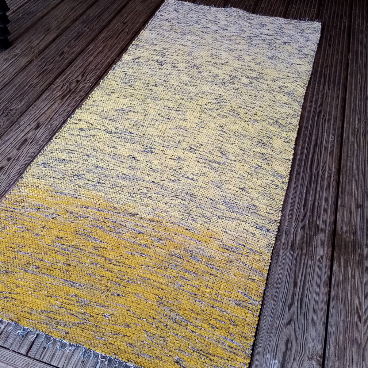 Paklājiņš no pārstrādātiem diegiem un efektdzijas kokvilnas velkos. Izmērs : 1,62 m x 0,73 m. Var saudzīgi mazgāt. #grīdceliņi #austi_grīdas_celiņi #roku_darbs #mājas_tekstils #lupatiņu_paklāji #zero_waste #dizaina_paklāji #otrreizējie_materiali